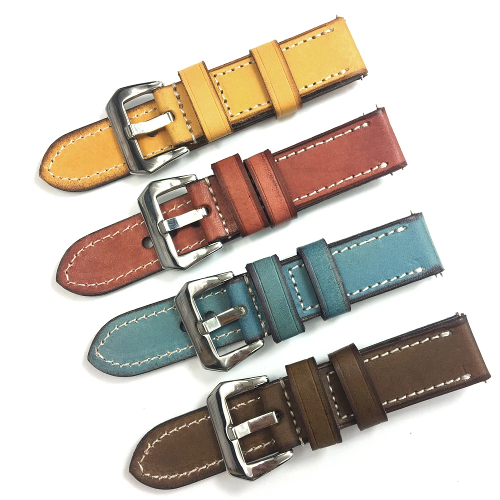 Ремешок для часов, кожаный ремешок в стиле ретро браслет ручной работы, 20 мм, 22 мм, 24 мм, винтажный толстый ремешок для часов, ремни для часов, полированная пряжка KZB03