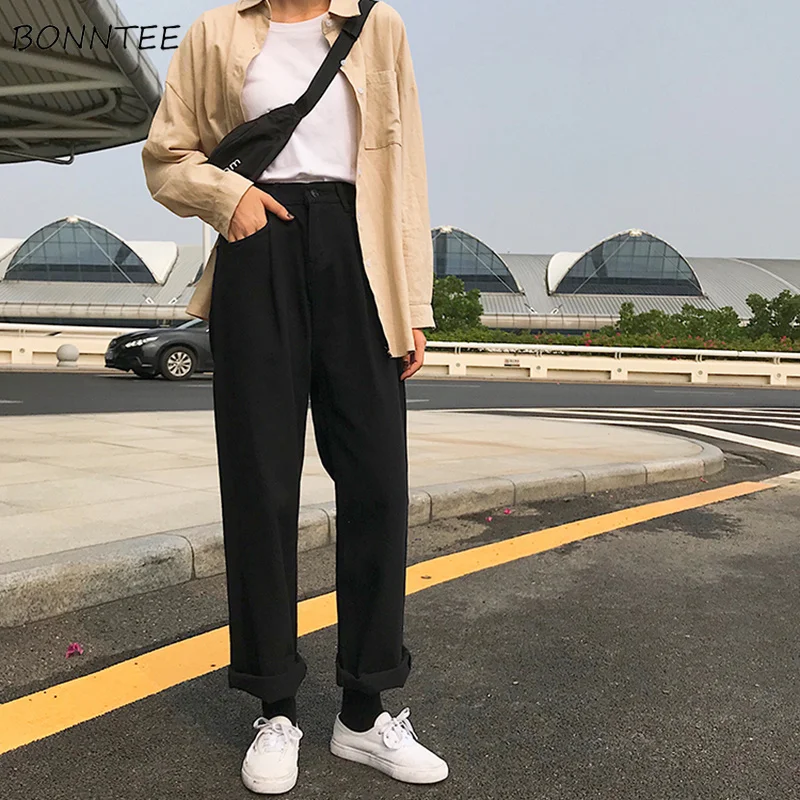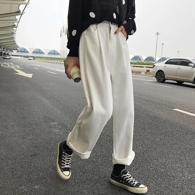 Джинсы женские свободные с завышенной талией, повседневные длинные джинсовые брюки с широкими штанинами в Корейском стиле, универсальные простые трендовые женские штаны в стиле Харадзюку