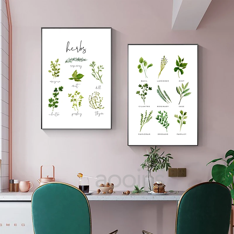 Травы, холст, печать и постер, акварель, базилик, орегано, шалфей, клинантро, холст, живопись, ботаническая картина, кухня, настенное искусство, Декор