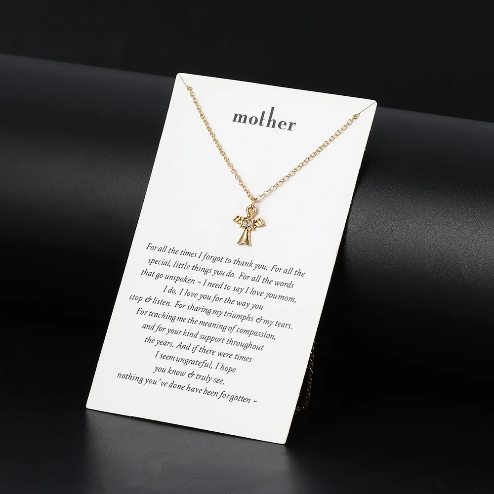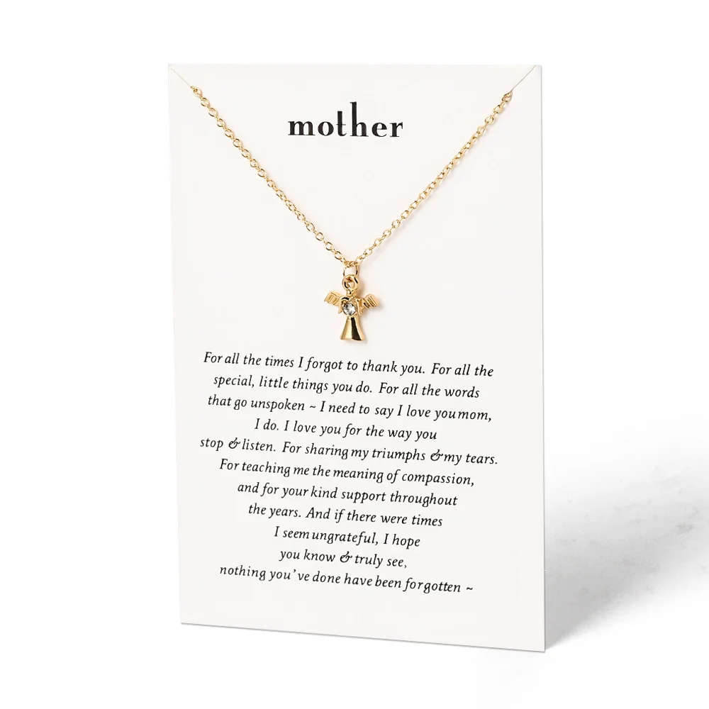Ожерелье с кристаллами для женщин, колье с изображением ангела матери, дружбы, тети, подарки с карточкой, регулируемая цепочка CN71
