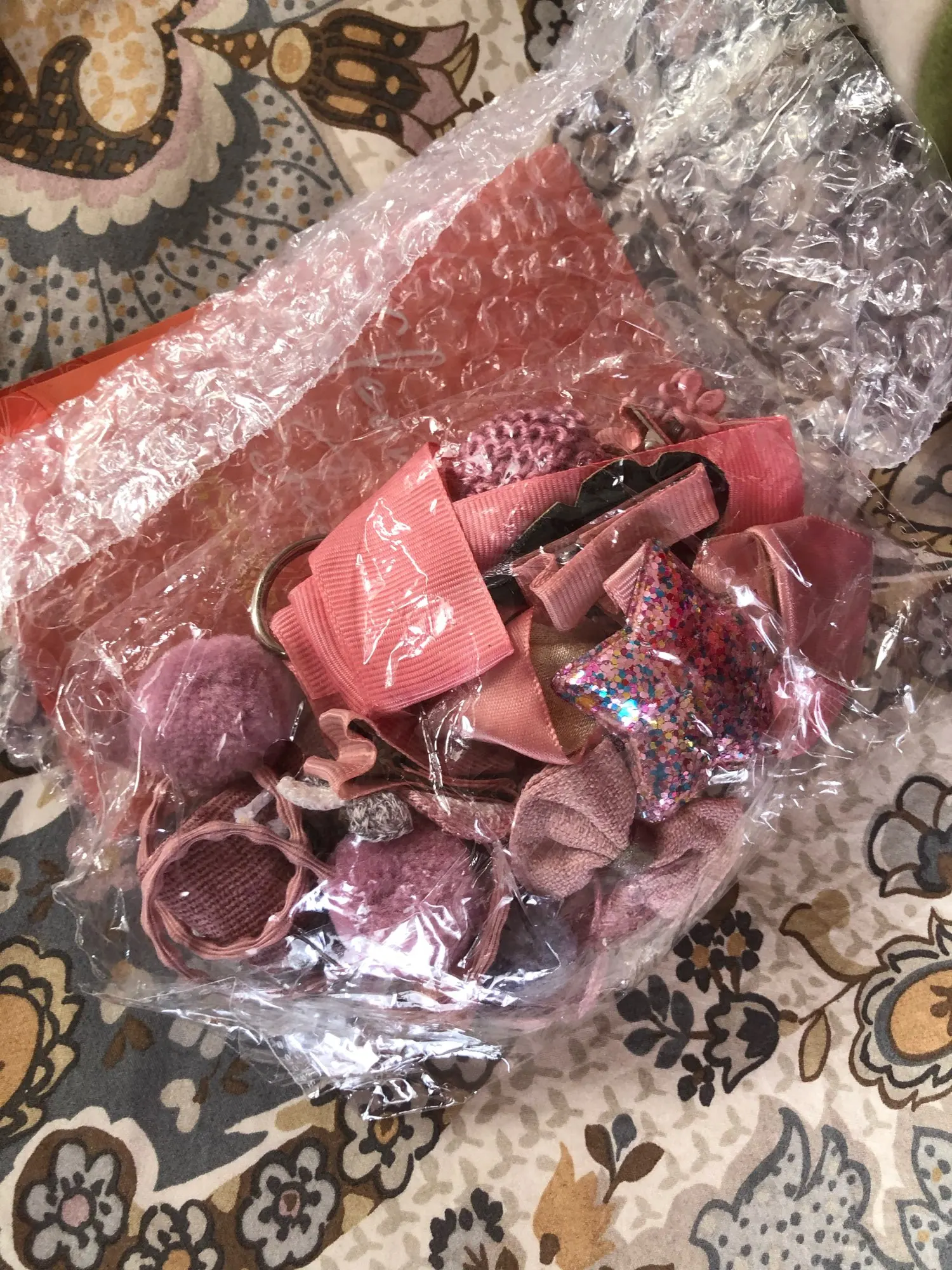 Хорошенькие заколочки и резиночка, правда на одной заколке бант неправильно собран и подучился кривой, но не страшно) прикупкой довольна