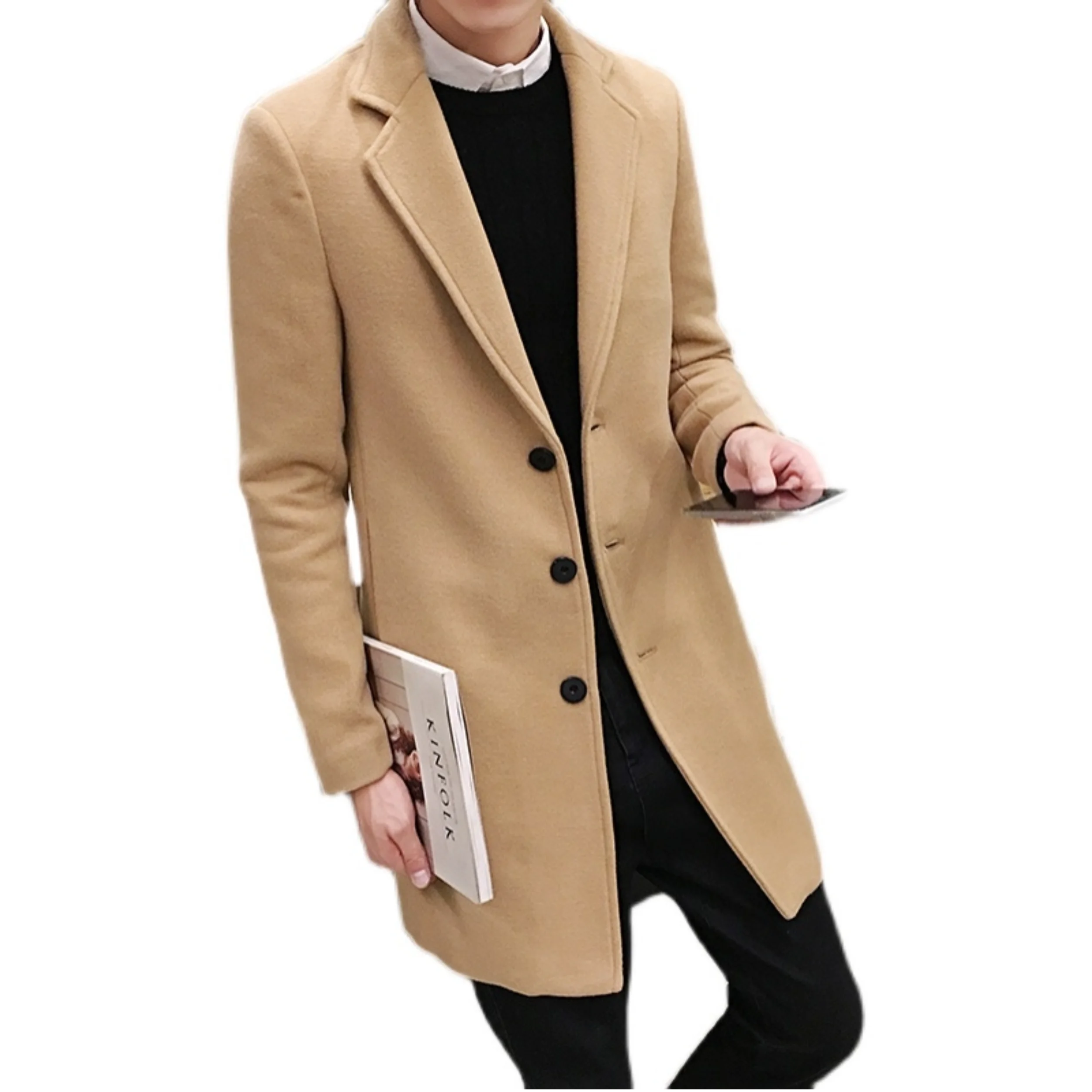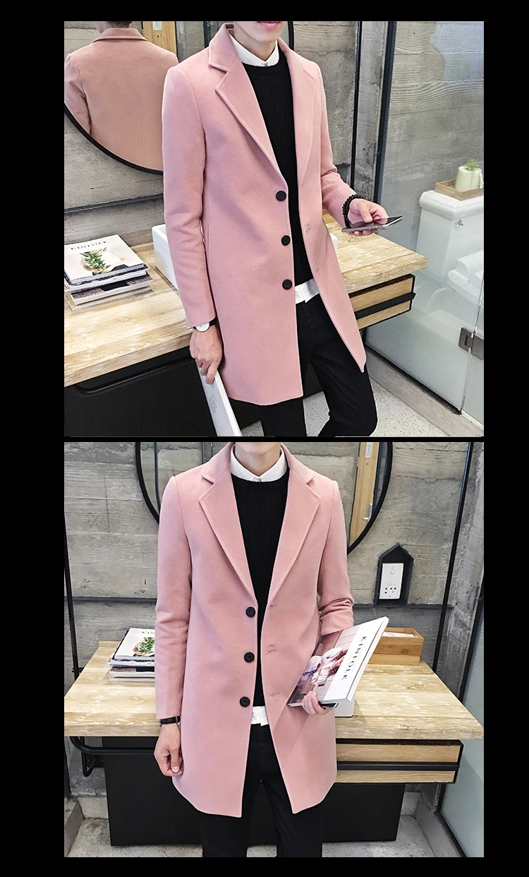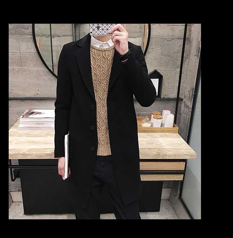Новинка Осень-зима 2022, мужские шерстяные пальто, Мужская облегающая длинная куртка, модный эксклюзивный однотонный облегающий мужской тренчкот, Женская куртка