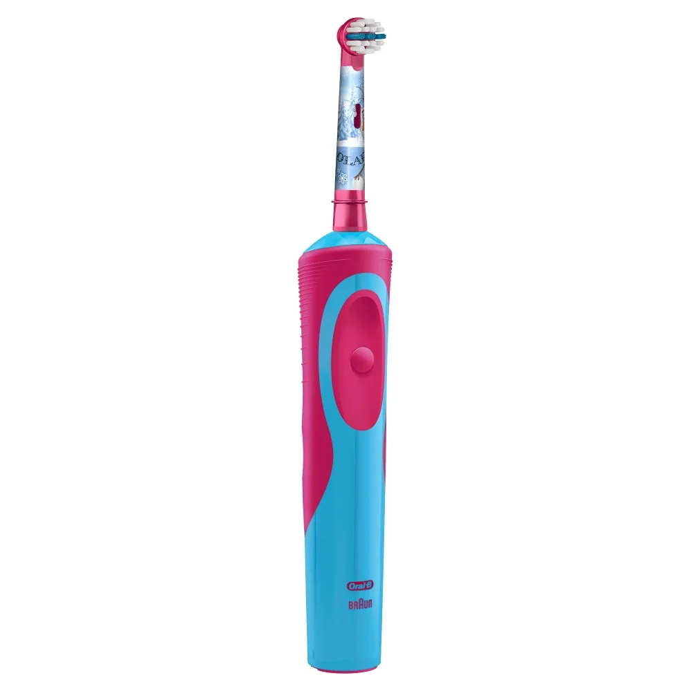 Электрическая зубная щетка Oral-B Stages Power Kids с веселыми героями мультфильма Холодное сердце прекрасно чистит зубы и удобно ложится в маленькие ручки ребенка. Эта аккумуляторная электрическая зубная щетка с экстрамягкими щетинками специально разработана для детей и совместима с приложением Disney MagicTimer от Oral-B.