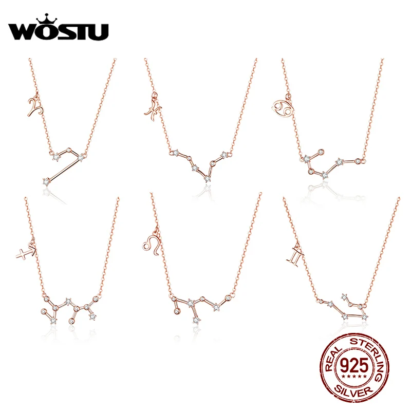 Чокер женский WOSTU из серебра 2019, 925 пробы, ожерелье под розовое золото, 12 созвездий, подвески на длинной цепи