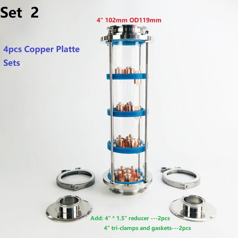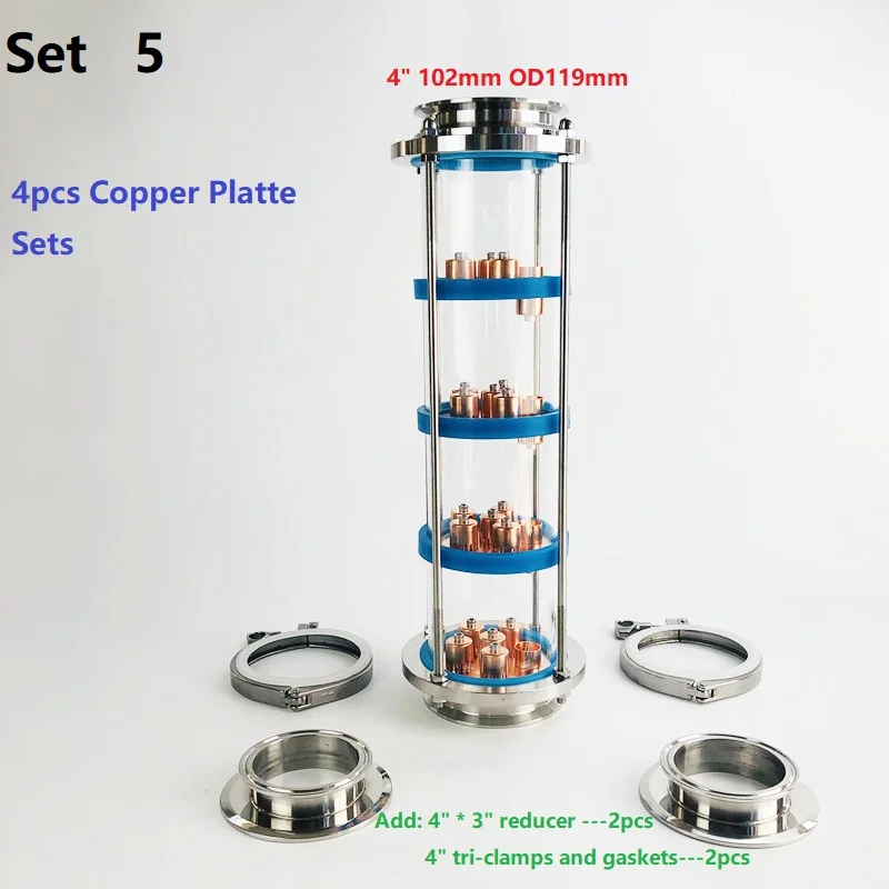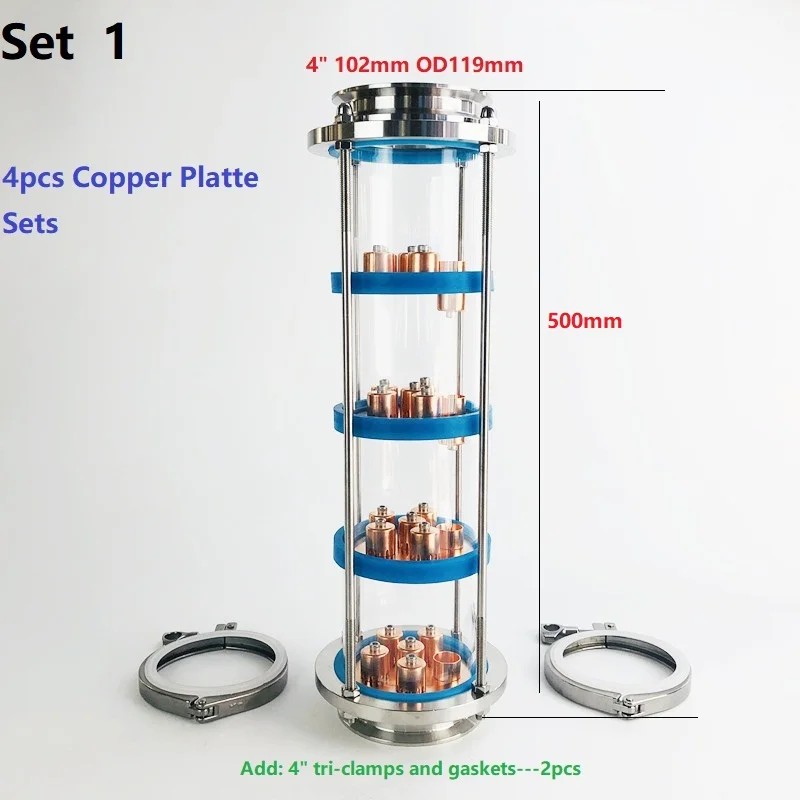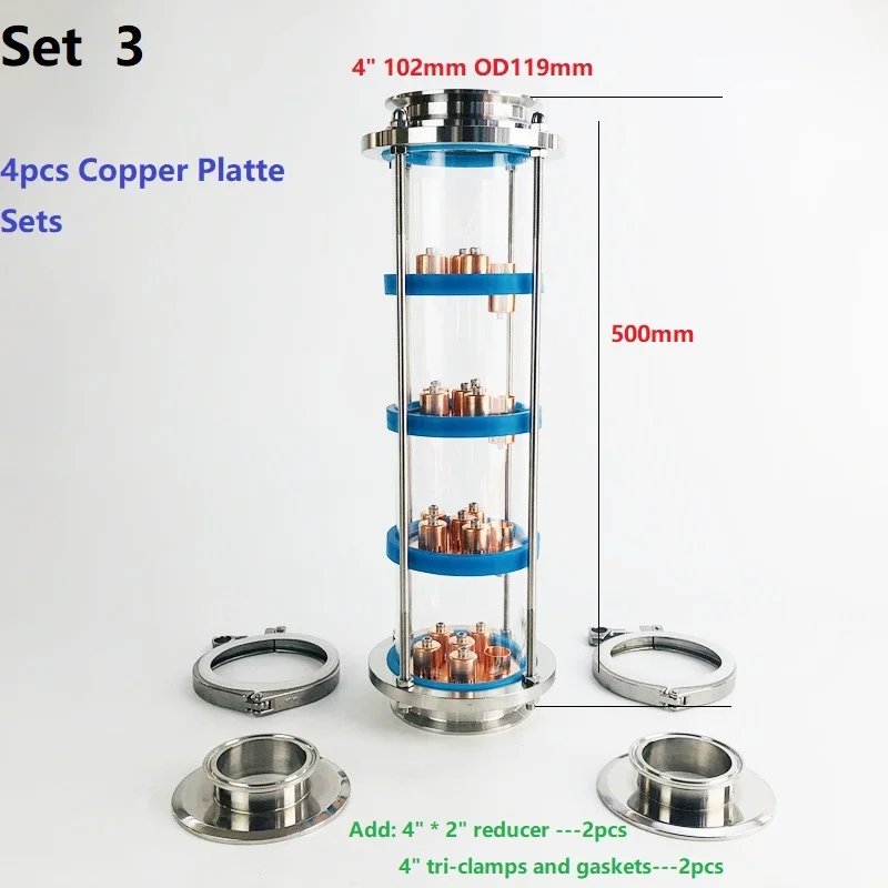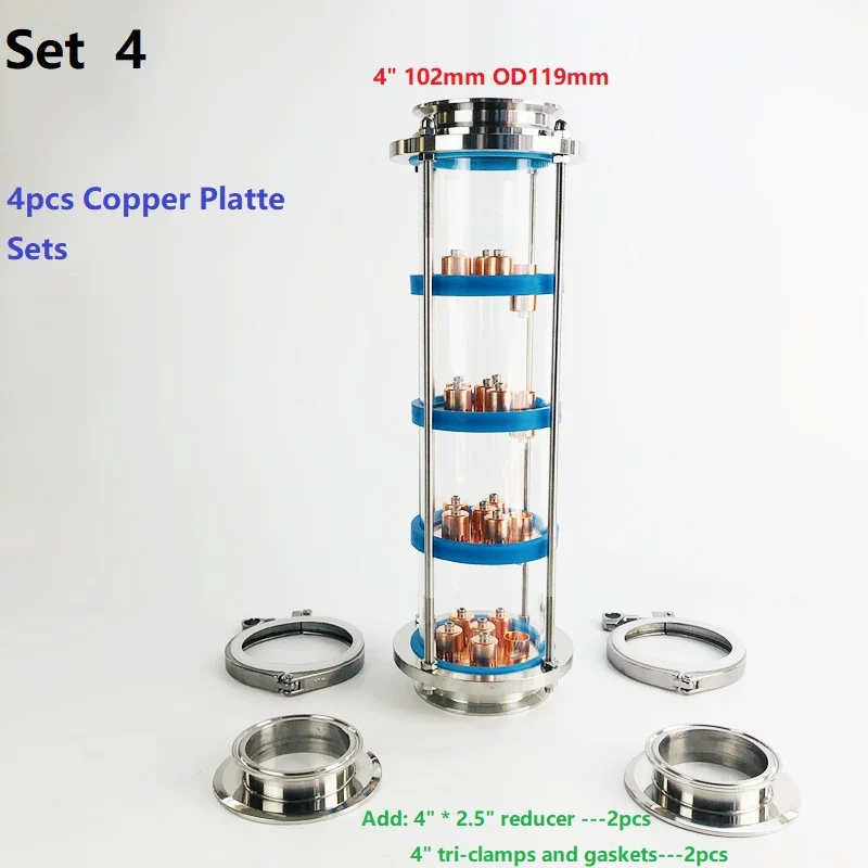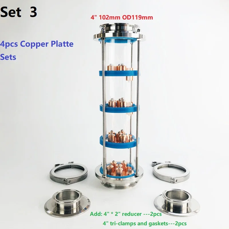 Бесплатная доставка, 4-дюймовая колонна для дистилляционных линз с 4 наборами медных пластин, трехзажимное смотровое стекло, соединение из нержавеющей стали 304