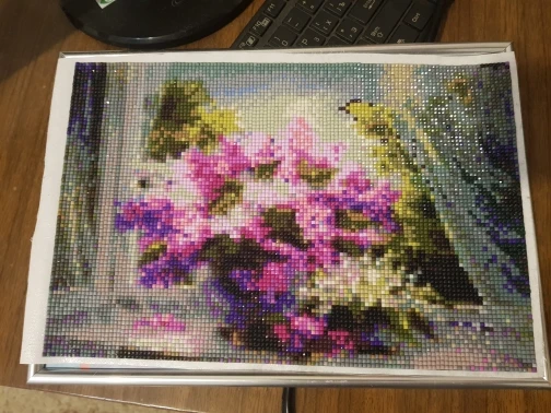 Посылка пришла очень быстро, всё хорошо упаковано, стразики целые, холст не помят, намотан на валик . Картина получилась очень красивая, но размер немного меньше 20*30, пришлось добирать до размера паспарту 21*30 стразиками с других заказов, поэтому немного отличаются цвета. Продавцу спасибо.
