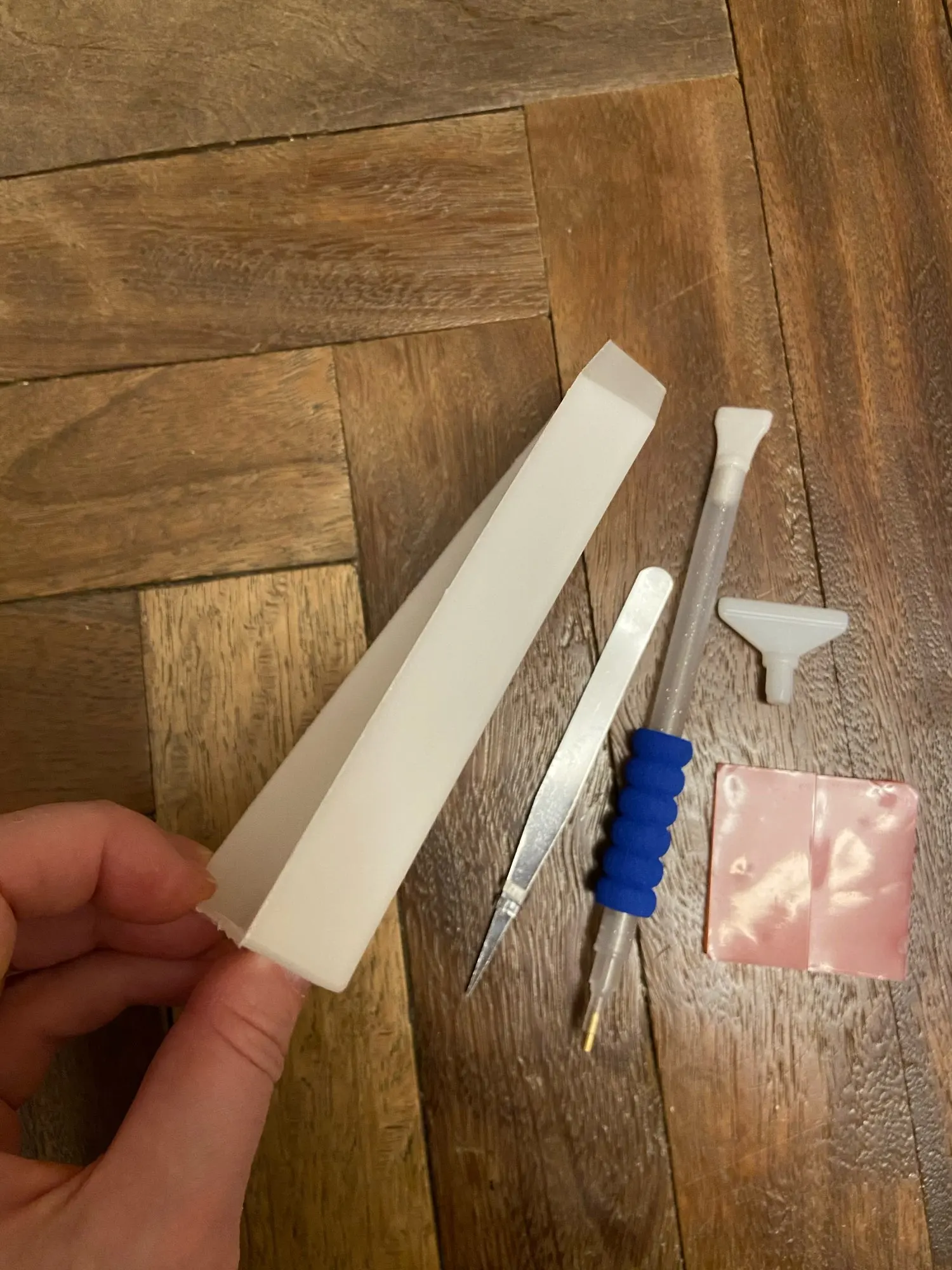 До Челябинской области заказ дошёл за 3 недели. Коробка оказалась помята, но содержимое цело может быть продавцу стоит лучше упаковывать♀️. Неожиданный бонус - дополнительный комплект инструментов. Клеить ещё не пробывала, надеюсь, дополню отзыв готовой работой.