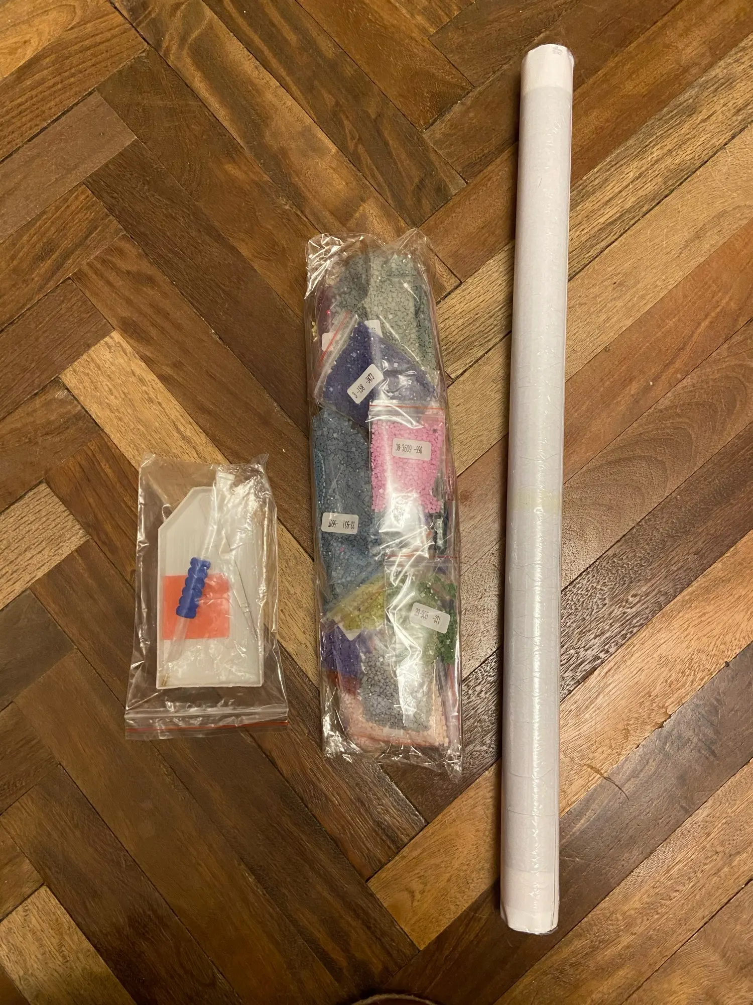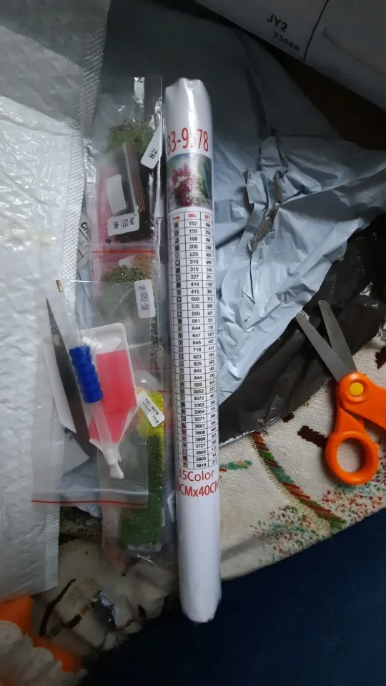 Доставка очень быстрая. Товар в отличном состоянии. У картины яркие детальки и хороший набор инструментов - сменная насадка для ручки и даже пинцет. Рекомендую.