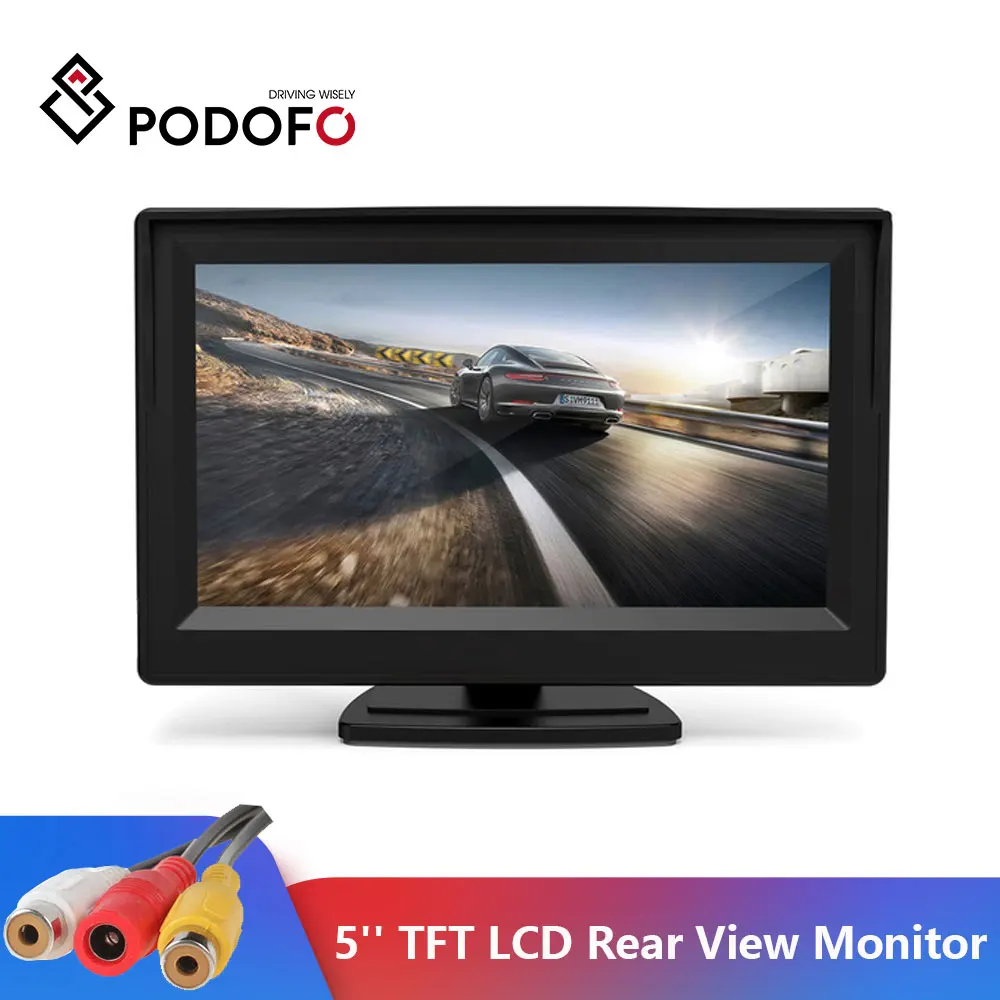 Podofo 5 ''монитор TFT LCD цветной экран 2 видео входа 2 Кронштейны для заднего вида резервная камера заднего вида DVD мини автомобильный ЖК-монитор