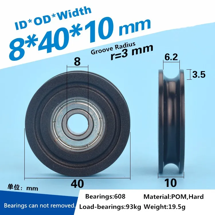 10 шт. 608ZZ пластиковый подшипник delrin для windor дверной ролик колесико U Рифленое колесо 8x40x10 мм шкив Бесплатная доставка