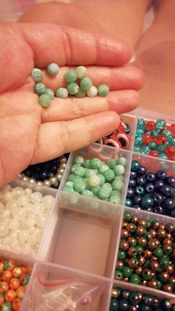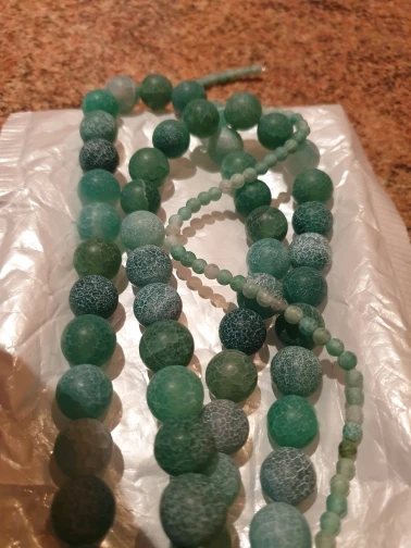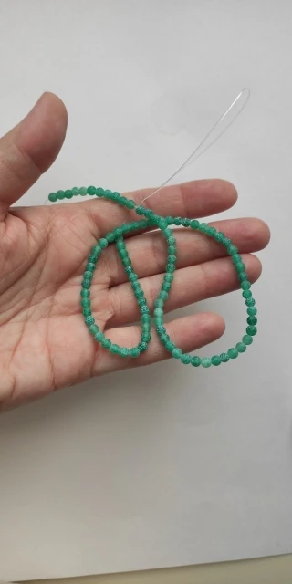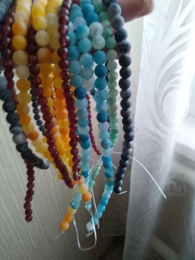 Бусины в диаметре 3- 3.5 мм, меньше обещанного. Количество не пересчитывала, думаю точно не меньше,чем надо. Цвет тоже отличается, белые рельефы почти незаметны, на картинке продавца гораздо красивее. В реале- простовато, Теперь не знаю что придумать,чтобы добавить красоты этим бусинам