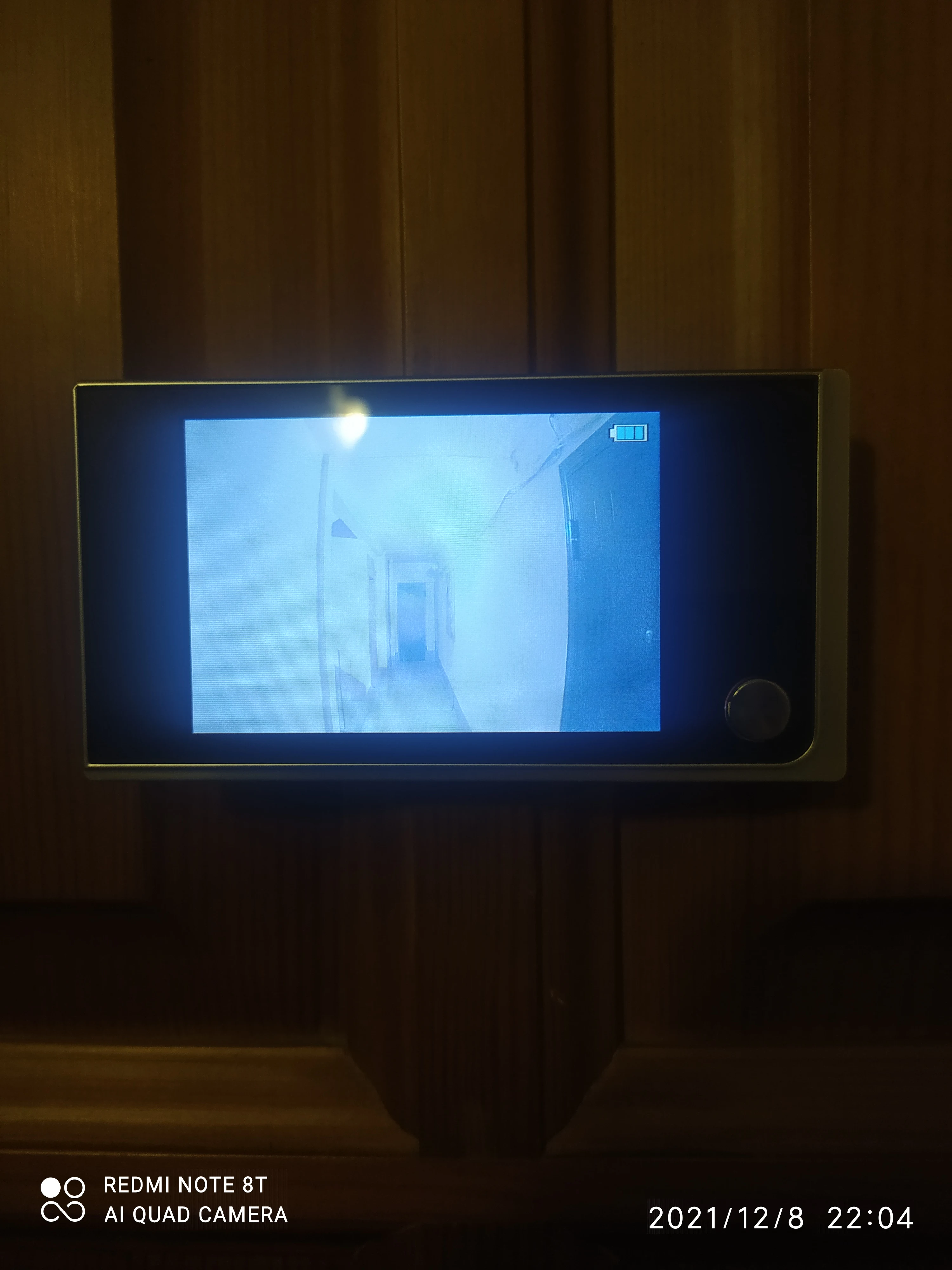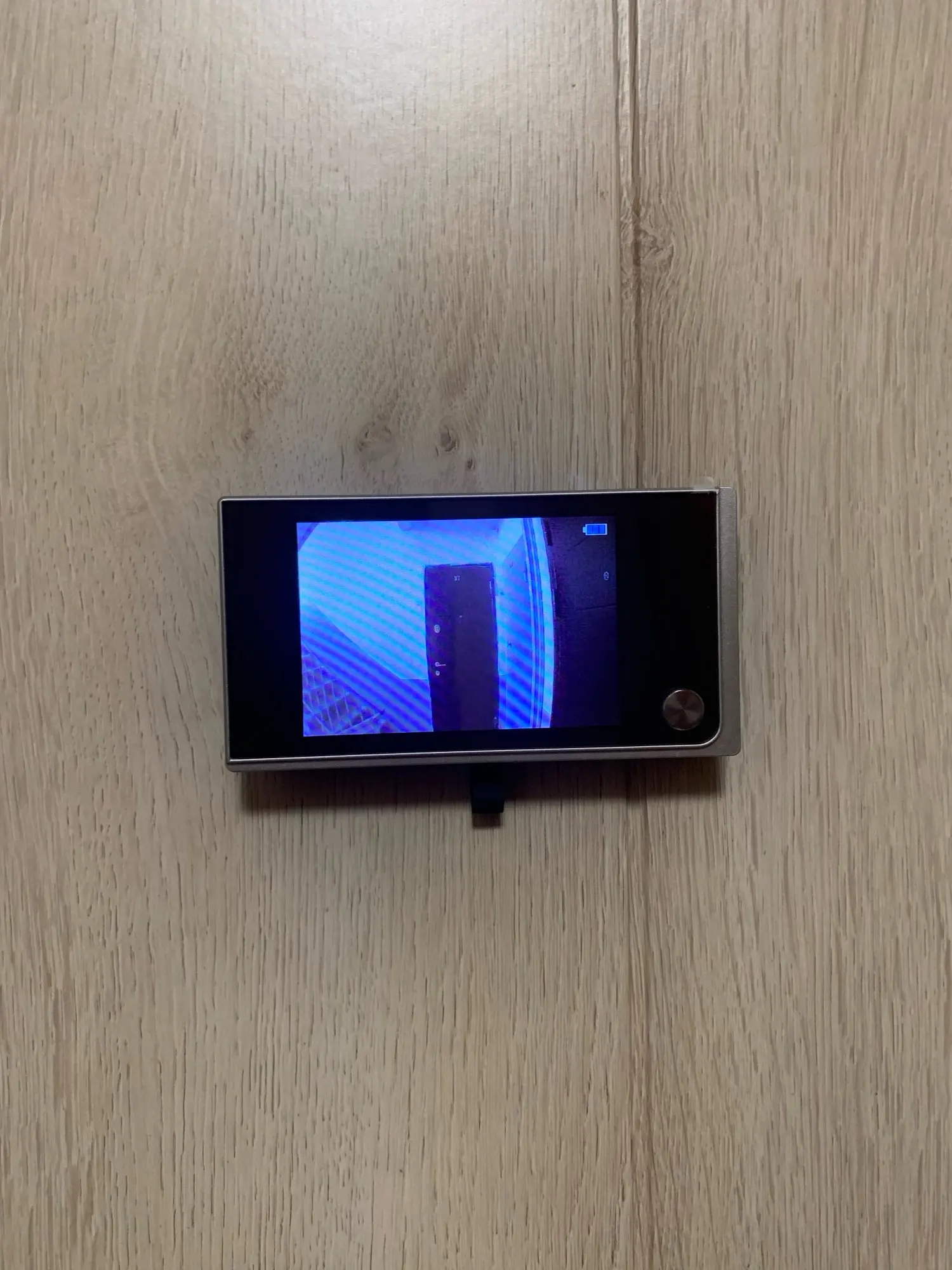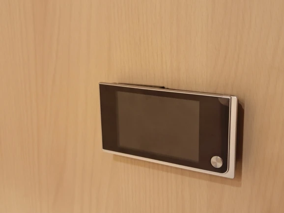 На нашу дверь с личинкой на замке глубиной 120мм глазок зацепился болтом за самый край. Если поменять болт подлиннее, то не получится защелкнуть шлейф в экран, будьте аккуратнее при покупке. У нас дверь толстая, но получилось впритык