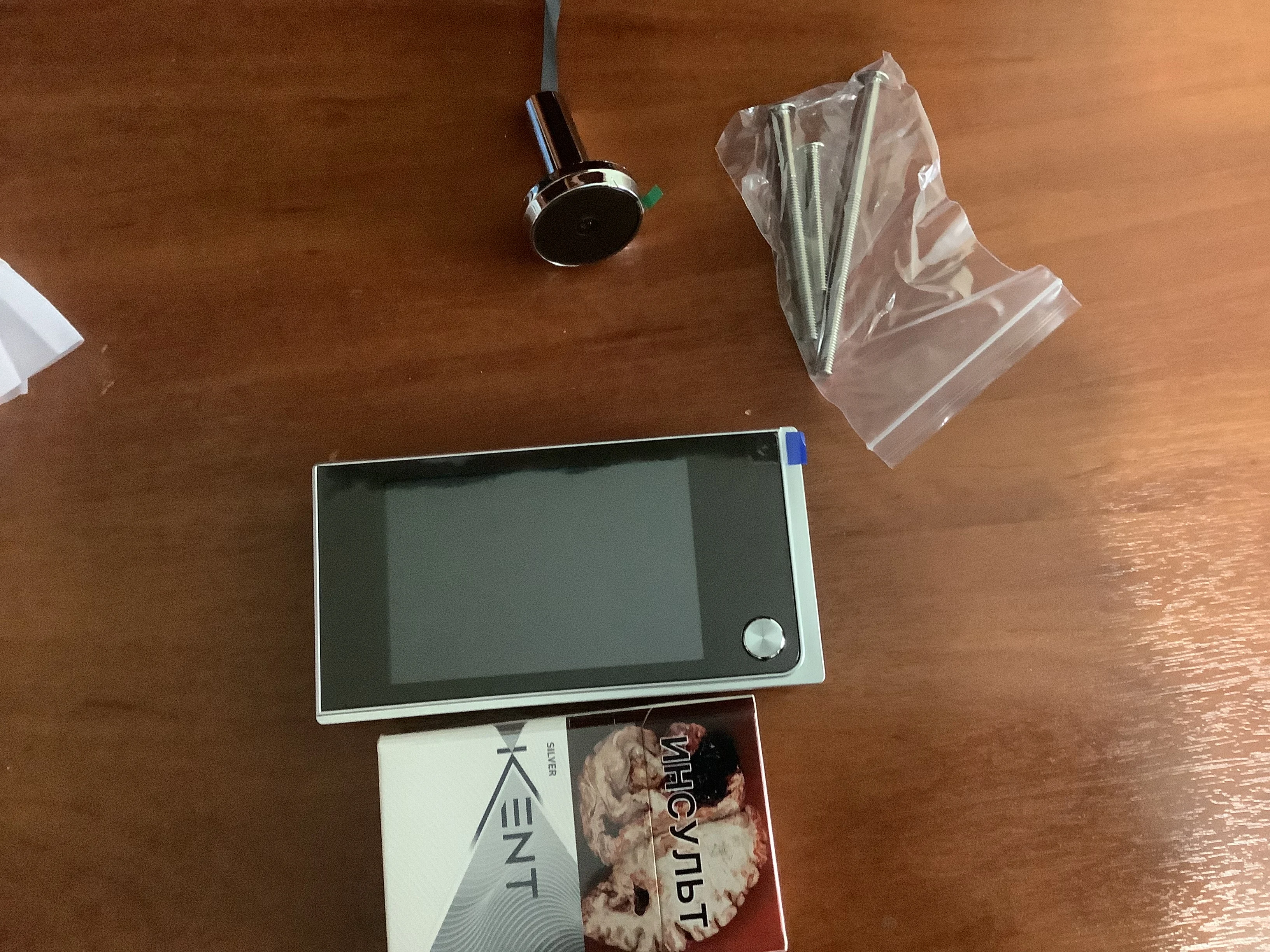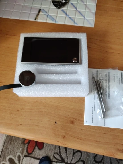 Заказ шёл 4 недели, в принципе нормально. Упаковано хорошо, всё пришло в целости и сохранности. Установка очень простая, поставил за 5 минут. Батареек в комплекте нет. Купил батарейки, подключил - всё работает, всё показывает. Картинка более-менее, лицо рассмотреть можно. За такие деньги - нормально. Как долго будет работать - посмотрим.