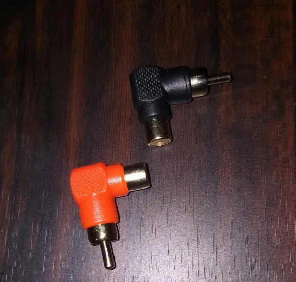 Переходник RCA под углом 90 градусов, штекер-гнездо, 2 шт.