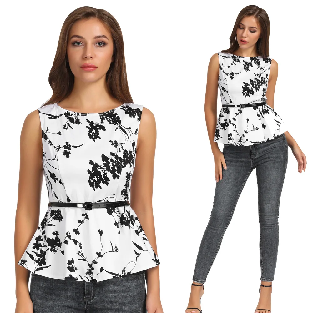 Женская летняя рубашка с цветочным принтом, без рукавов