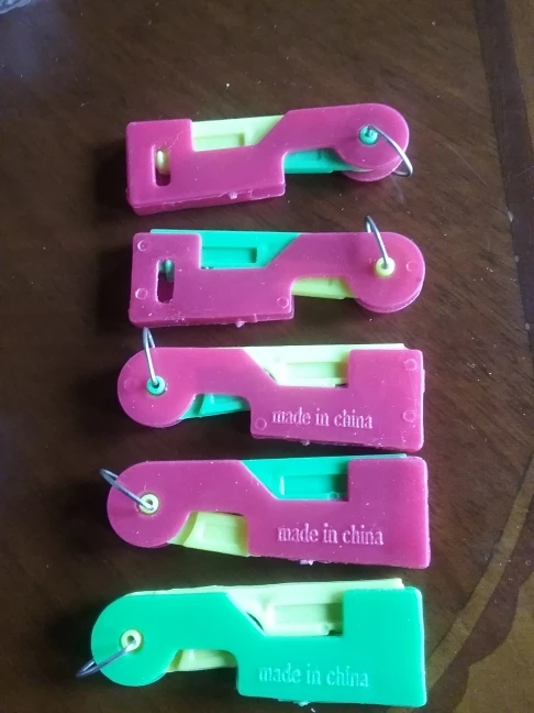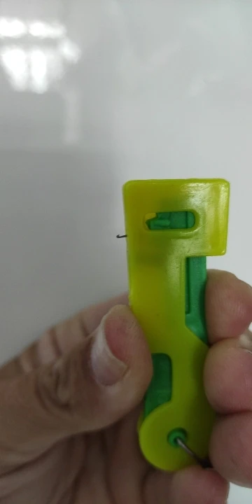 Хорошее приспособление для вдевания ниток. Мне очень помогает вдевать нитку в иголку, без него даже в очках у меня не получается. Заказ шел долго.