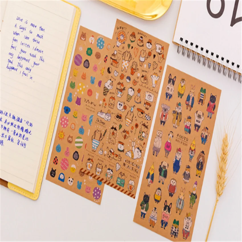 3 шт.лот Kawaii дневник наклейки крафт бумага кошка наклейка Скрапб...