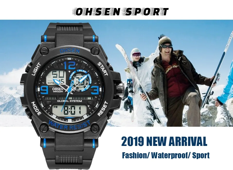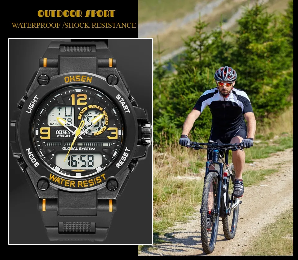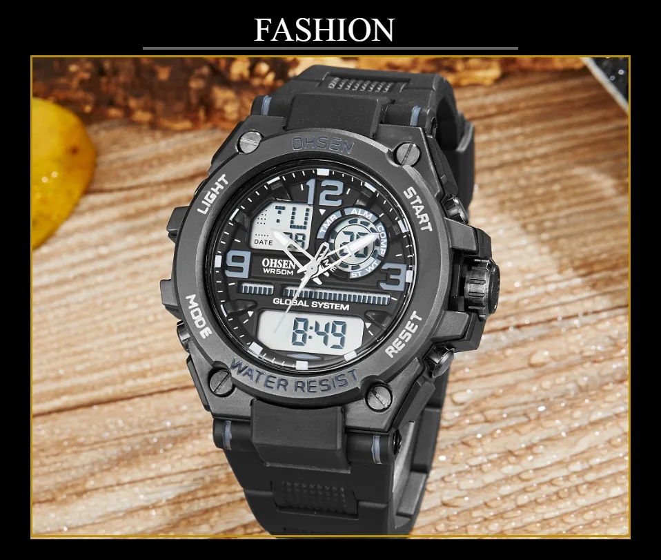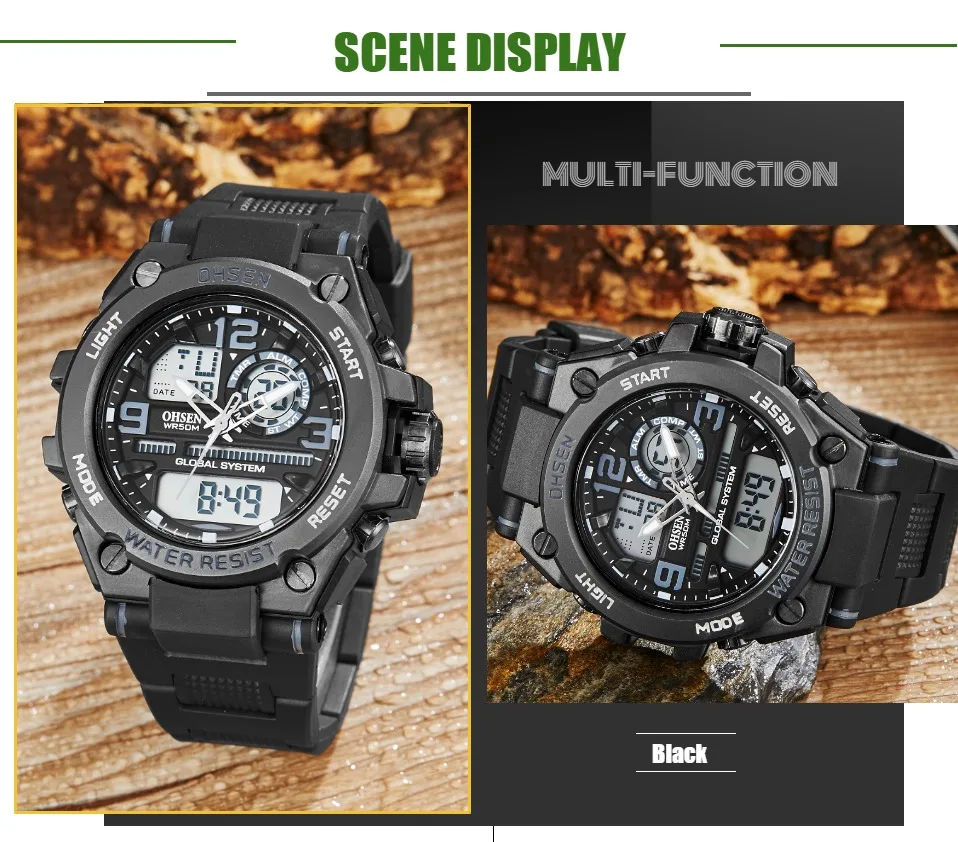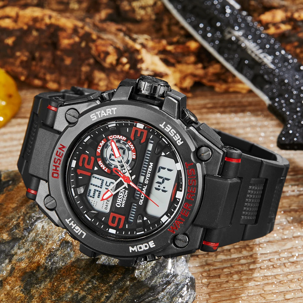 OHSEN мужские спортивные часы с двойным временем, Цифровые кварцевые Модные Военные мужские наручные часы 50 м водонепроницаемые с будильником и секундомером, мужские часы в подарок