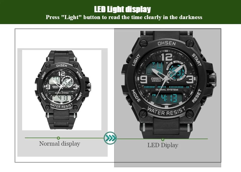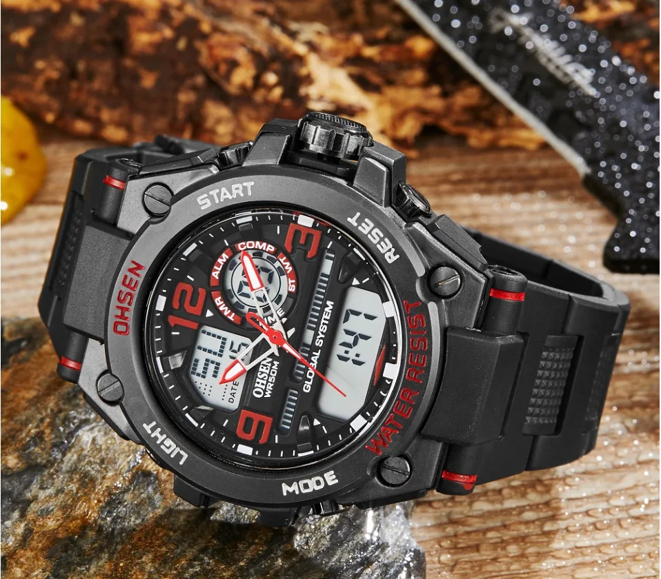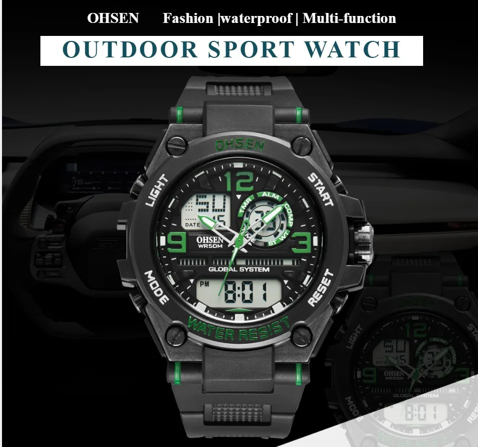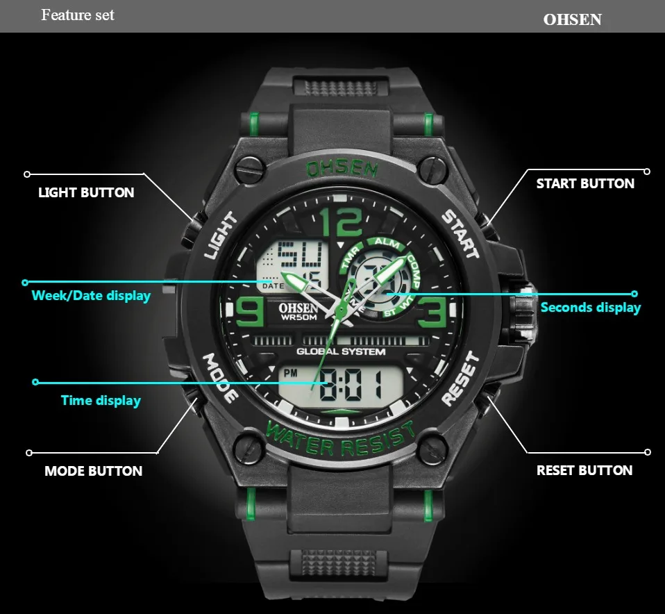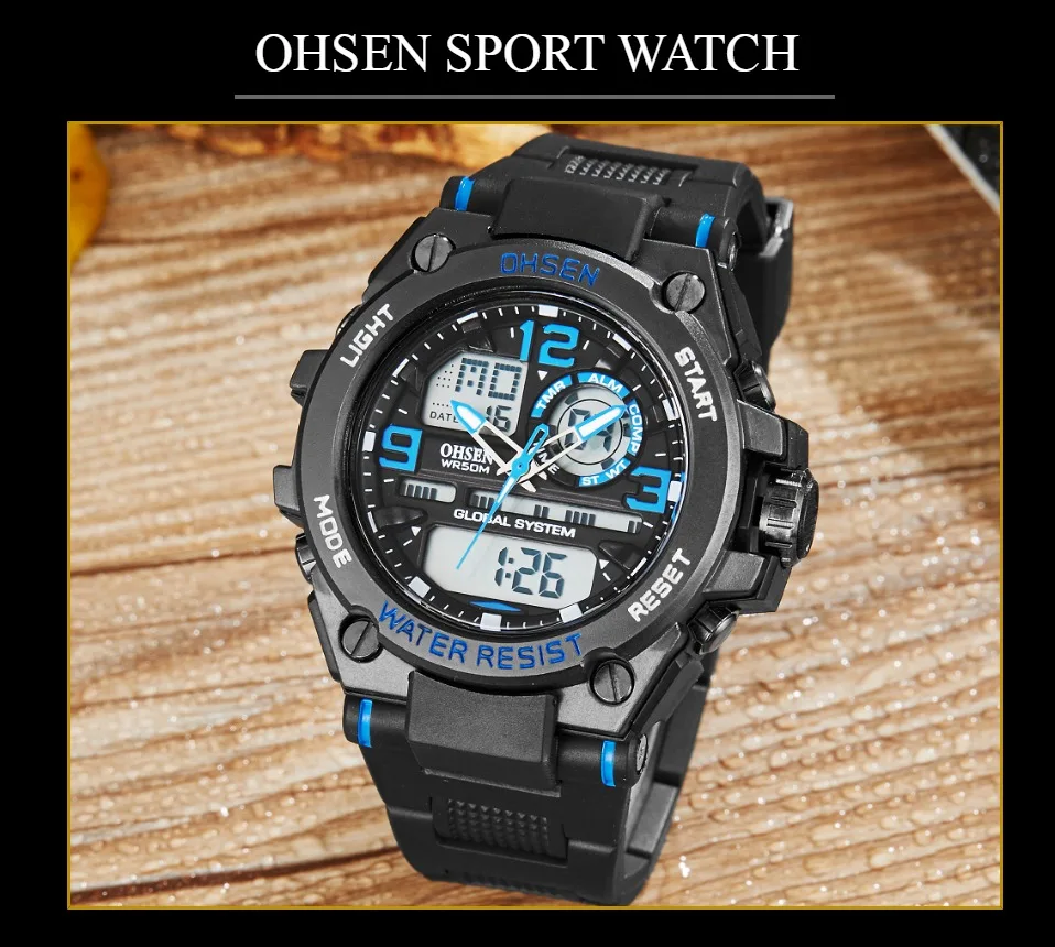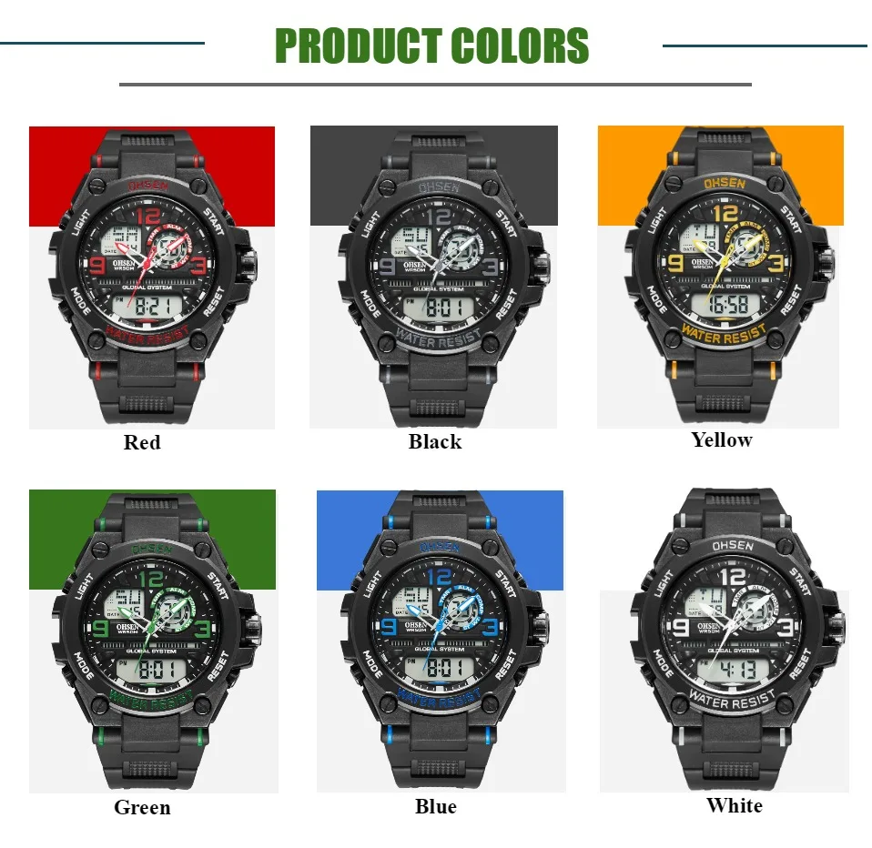 OHSEN мужские спортивные часы с двойным временем, Цифровые кварцевые Модные Военные мужские наручные часы 50 м водонепроницаемые с будильником и секундомером, мужские часы в подарок