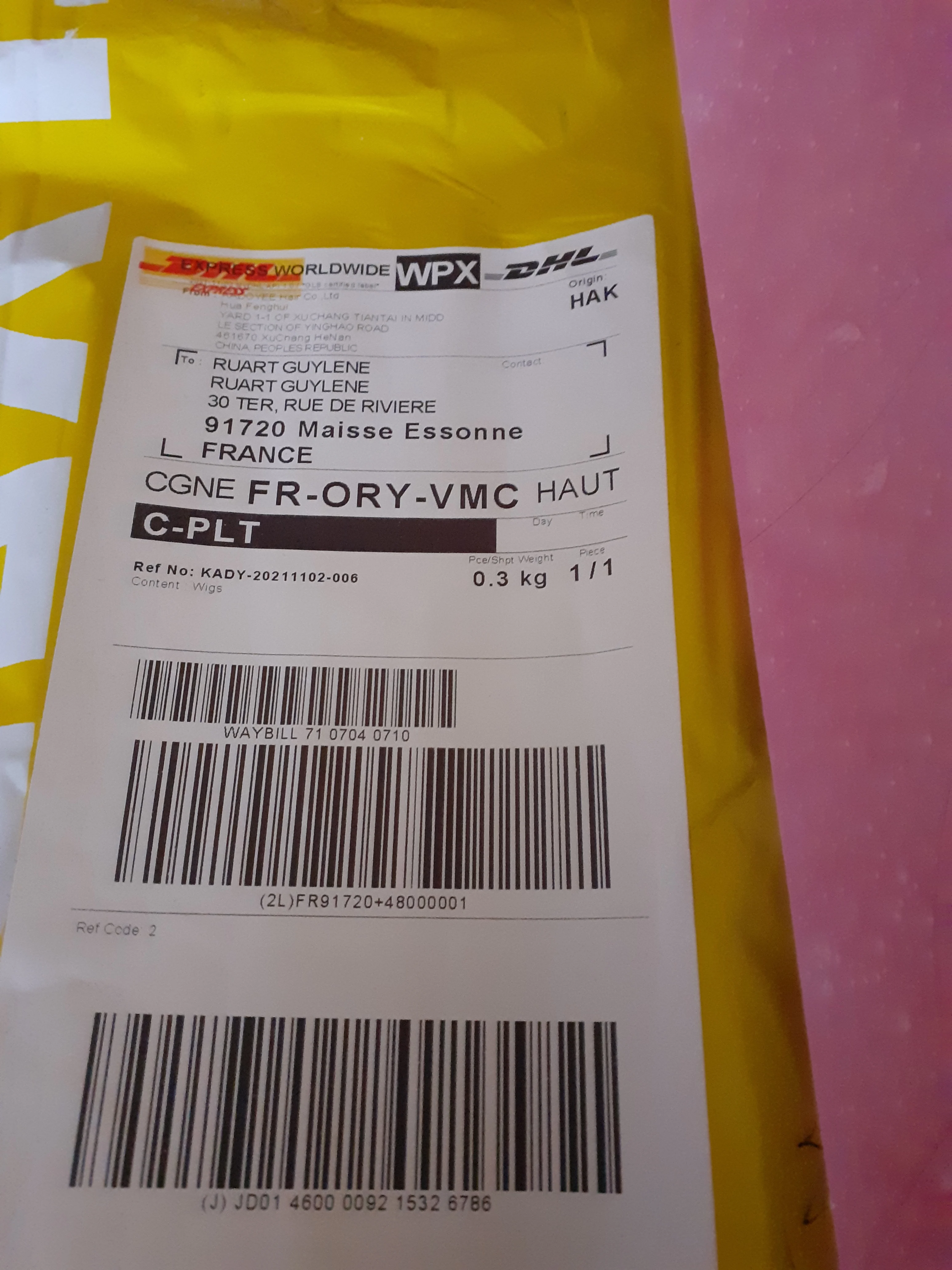 Я сообщаю вам о возврате моего несоответствующего заказа без челки по сравнению с заказанным с челкой. Когда я сообщил об этом продавцу, он ответил мне, что мне пришлось сам резать челку, но, учитывая имплантацию волос, это невозможно. Я только что сообщил в почтовом отделении. Возврат возвращается ко мне на 28,10 евро, и я должен сделать таможенный формат. Внезапно я заплатил за этот парик 120,27 евро плюс возврат 28,10 евро продавцу, что делает меня в общей сложности 148,37 евро. Я надеюсь получить этот парик, заказанный с челкой, как можно скорее, и что продавец возместит мне эти расходы по возврату. Я прилагаю фотографии парика, полученного без челки