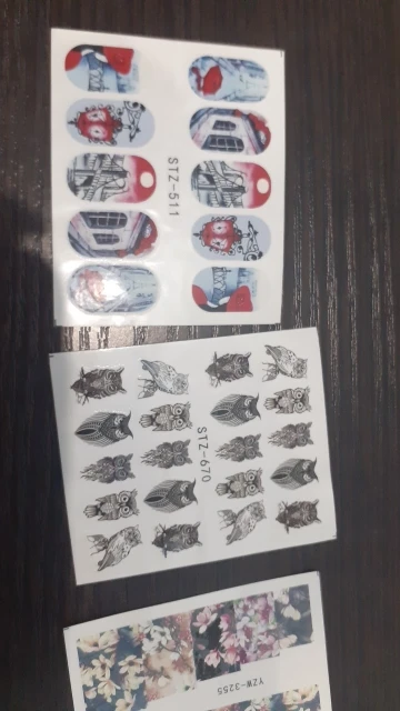 Продавец не умеет считать до 5 или не хочет. Все, что заказала по 5, положил по 4. Хороший зароботок за день. А сами наклейки хорошие, на мои тонкие ногти отлично. Но осадок остался.