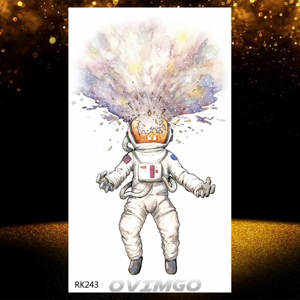 Акварель, космонавт, Вселенная, Временные татуировки, наклейки для детей, поддельные татуировки, планеты, Звездные татуировки, Детские водостойкие, Космический человек