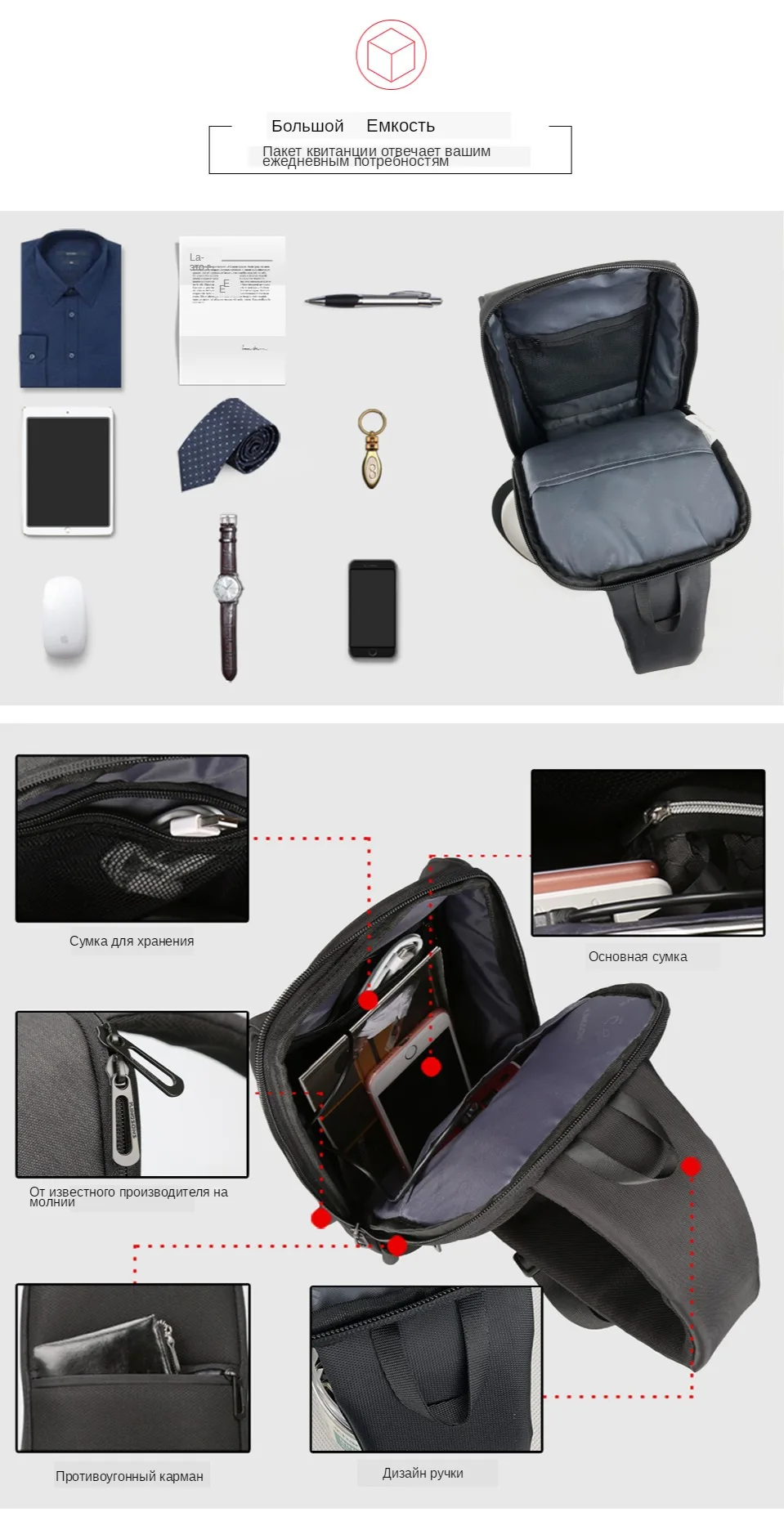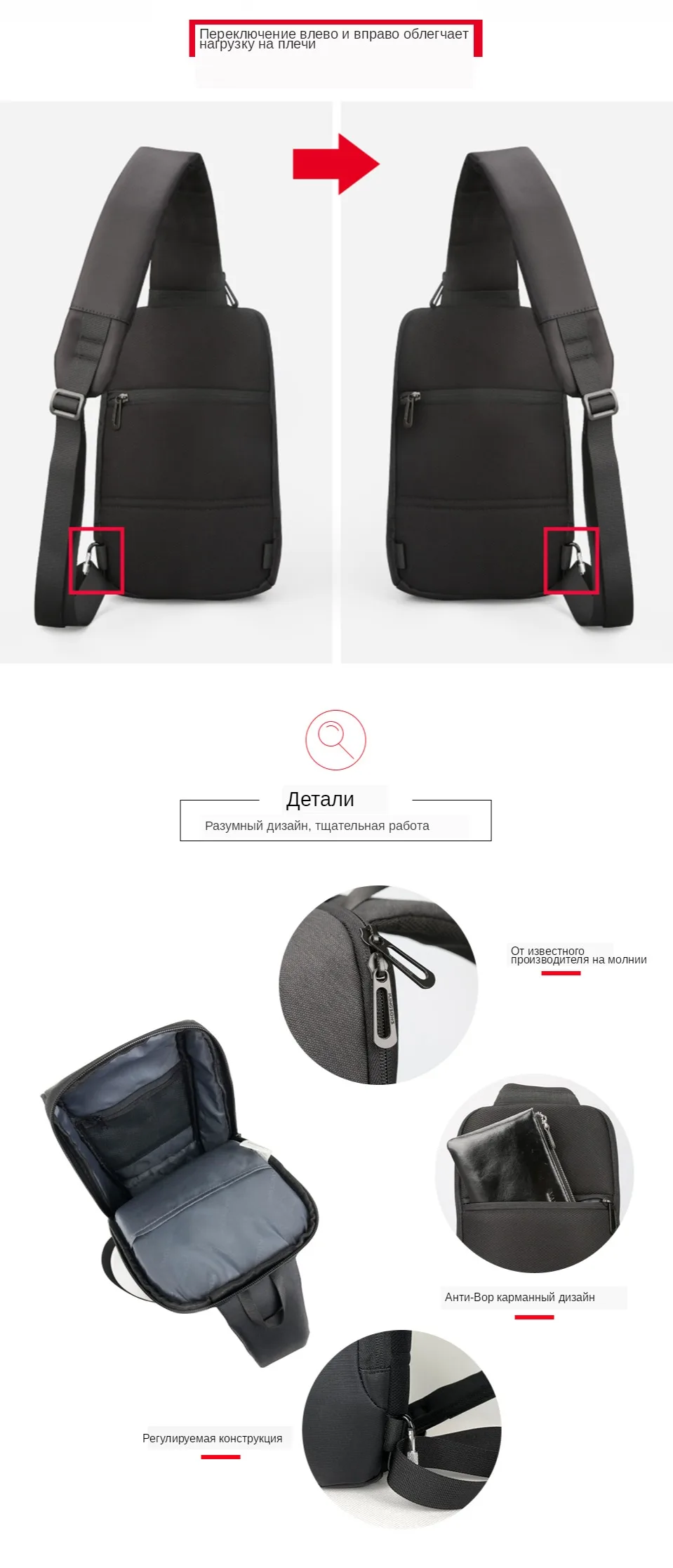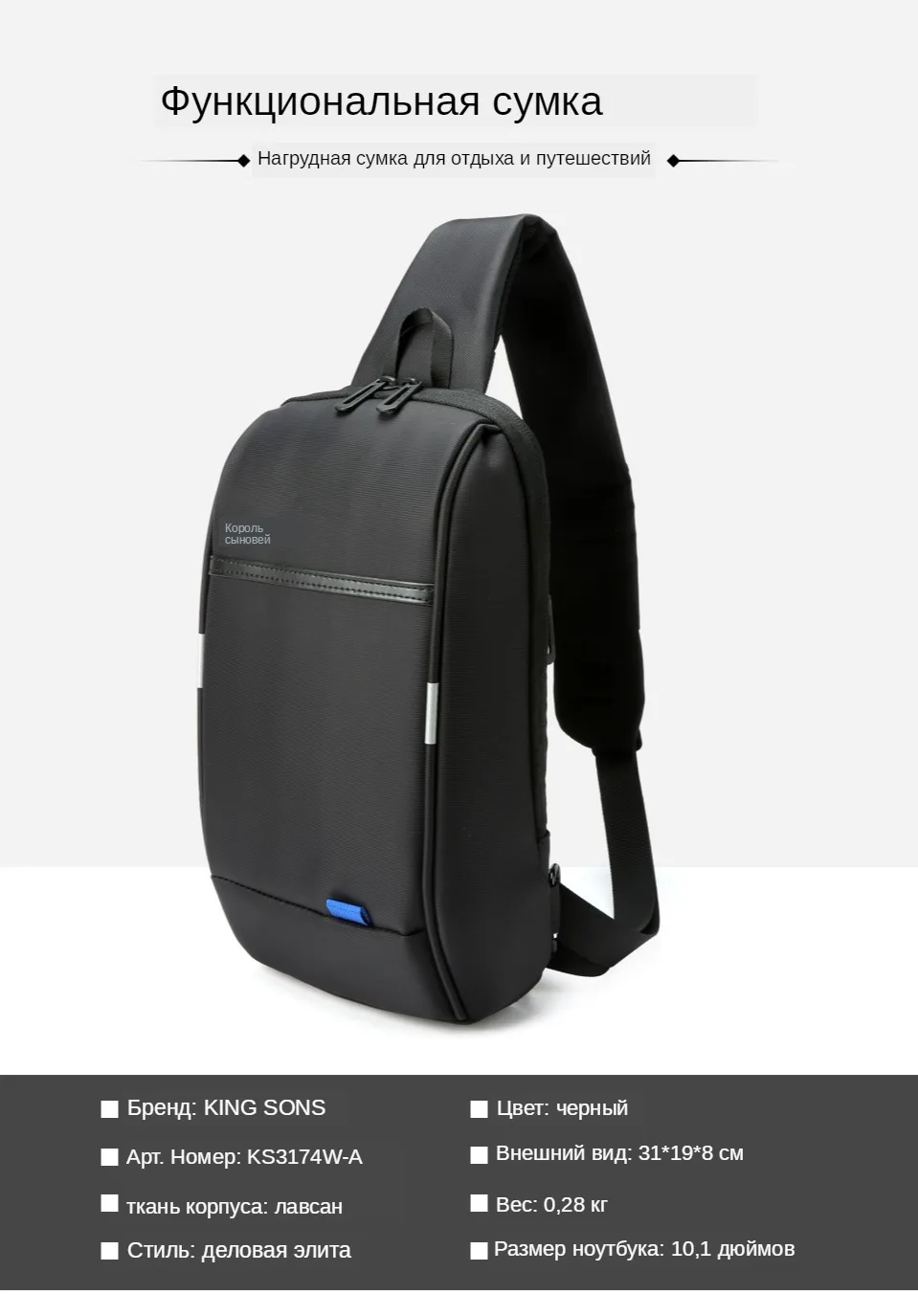 Рюкзак мужской Kingsons через плечо, 10,1 дюйма, с одним ремешком, с USB-зарядкой
