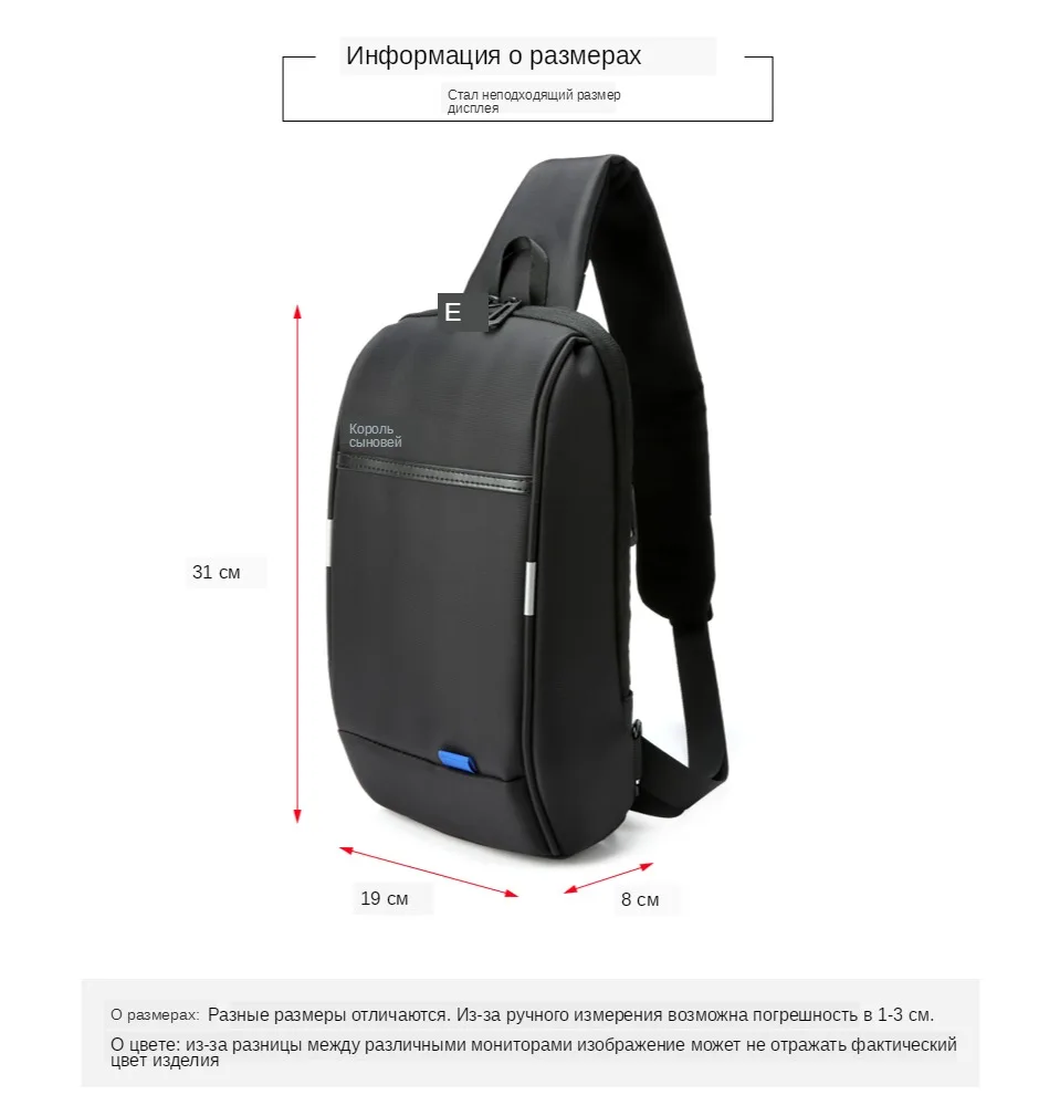 Сынишка доволен. Сумочка как раз для гулянки : телефон и водичка. Размер 16*30 см Отлично смотрится. Доставка быстрая 18 дней.