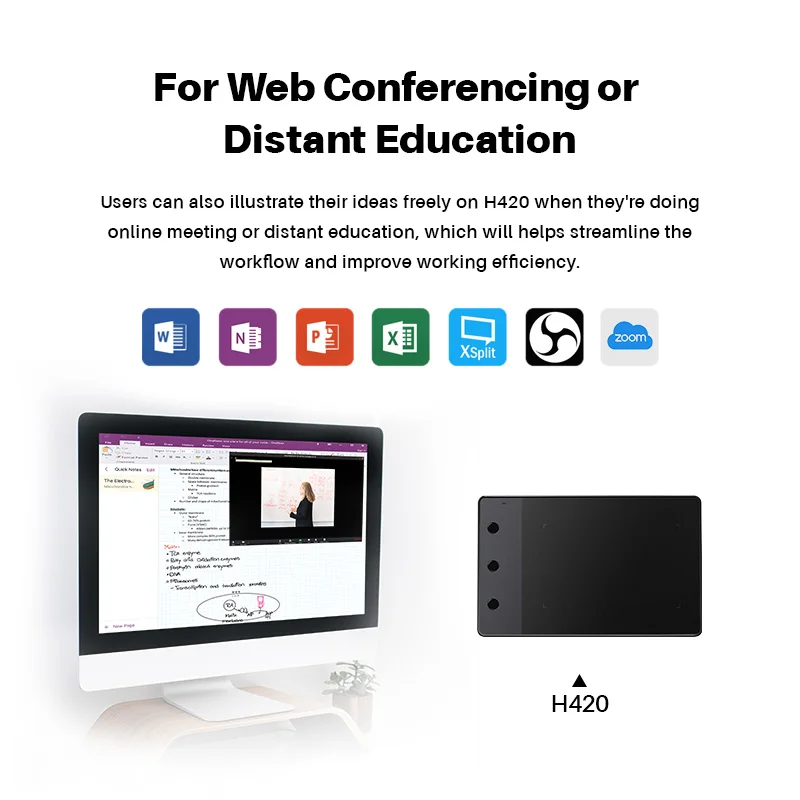 Графический планшет huion H420 с тремя кнопками, 2048 чувствительность к нажатию, блокнот для подписи с десятью дополнительными наконечниками (идеально подходит для osu)