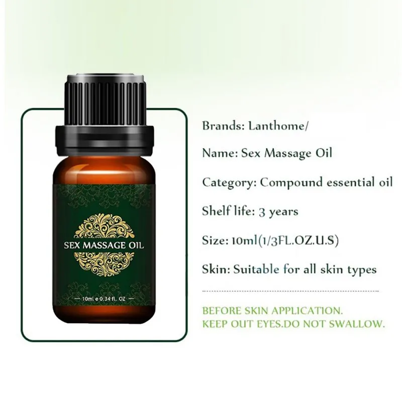* 100% Бренд новый Высокое качество!* Массажное масло оснащено успокаивающими ингредиентами для улучшения восприятия и облегчения мышечного напряжения для спины, плеч, шеи и многого другого, расслабления и создания хорошей атмосферы.* 100% натуральные и мягкие ингредиенты, без раздражения.* Это усилитель секса для мужчин и женщин, повышающий сексуальный вопрос, позволяет обоим людям наслаждаться удовольствия, вызванным культурой.* Расслабьтесь, расслабьтесь, создайте романтическую атмосферу, и тело, и ум удовлетворены.* Стимулирует гормональную выработку, обе стороны притягиваются друг к другу и переживают романтическую сексуальную жизнь вместе.* Физическое удовольствие, улучшение сексуального вкуса, продвижение сексуальной гармонии.