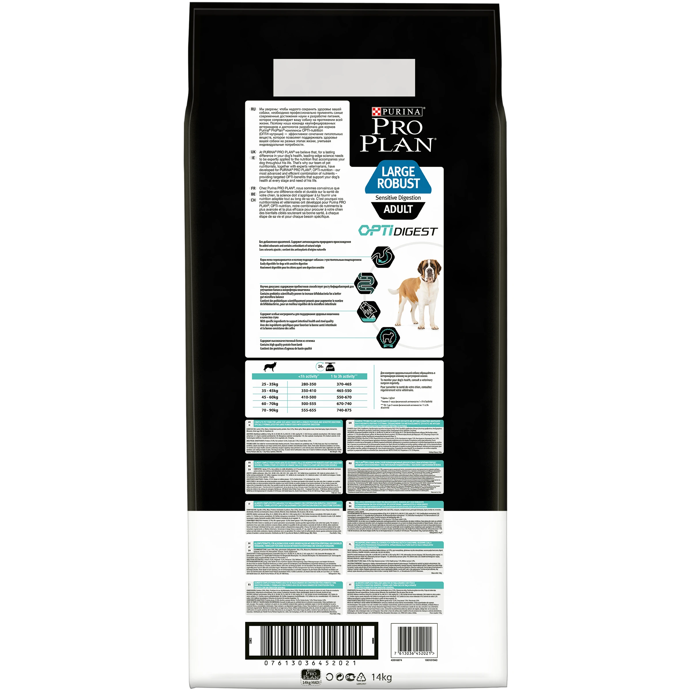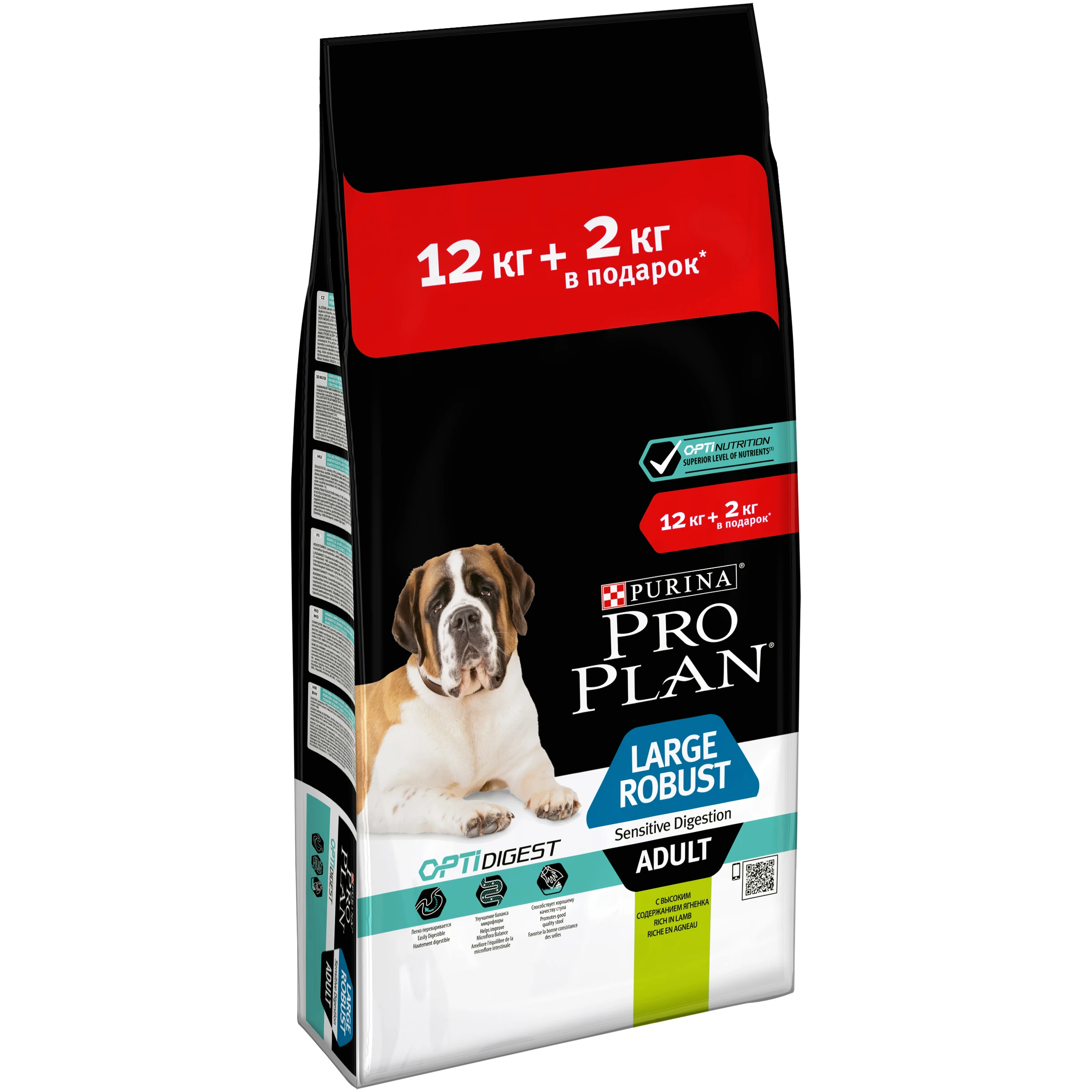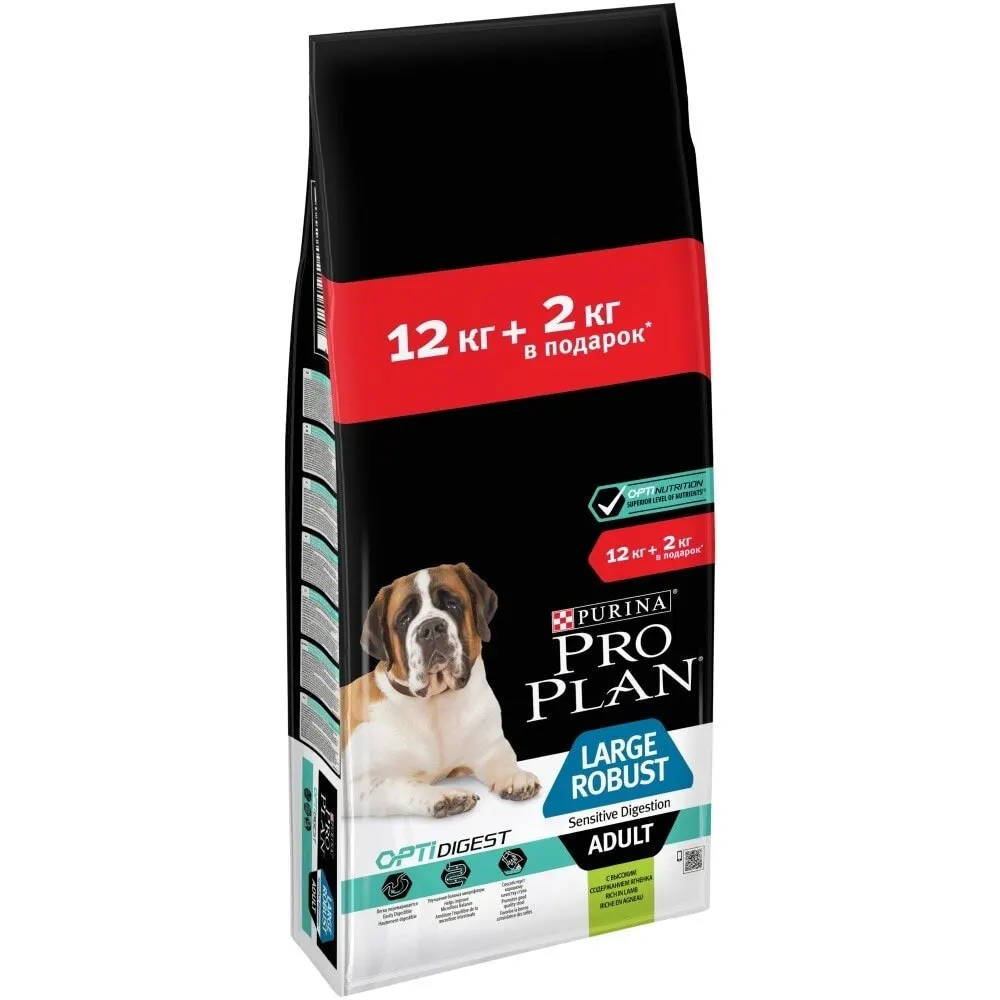 Pro Plan сухая еда для взрослых собак, крупных пород, мощное телосложение, чувствительное пищеварение, OPTIDIGEST, ягненок и рис, 12 + 2 кг