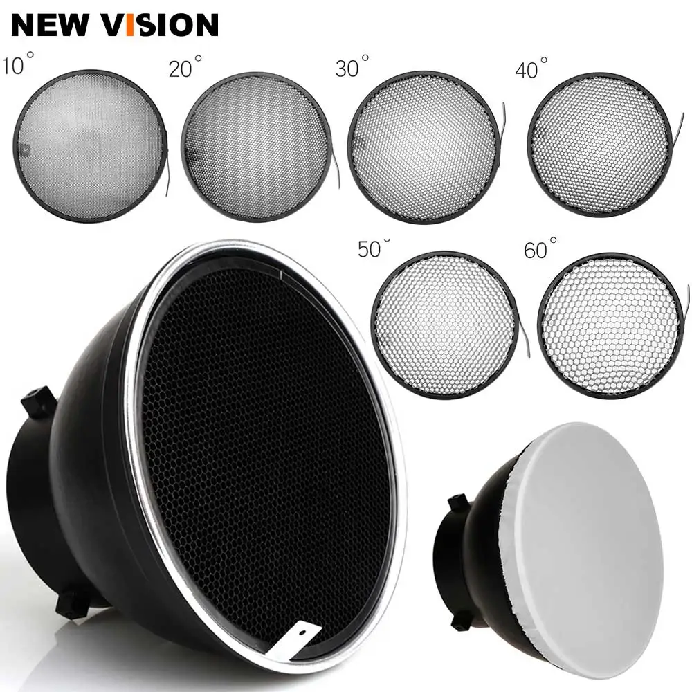Стандартный отражатель 18 см, 7 дюймов, с сотовой сеткой 102030405060 градусов, для крепления Bowens, студисветильник вспышка