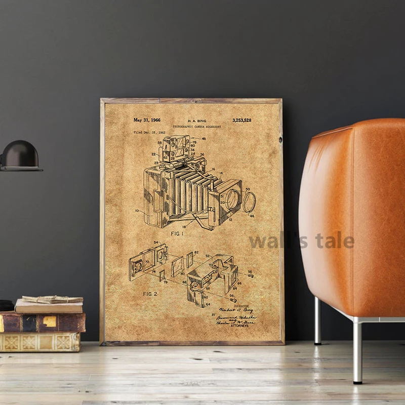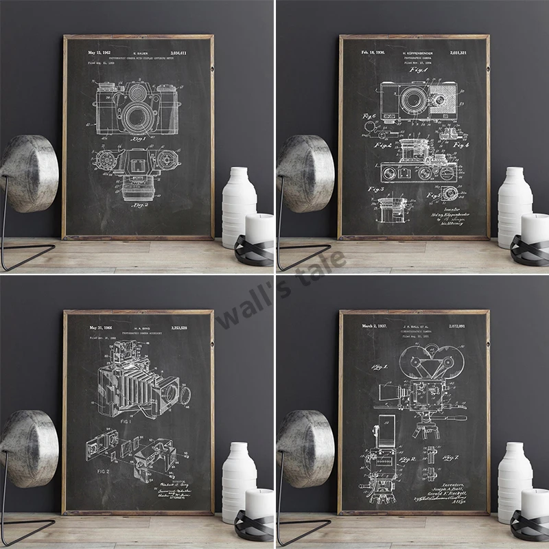 Запатентованный винтажный постер для камеры, художественные принты на холсте, фотосхема камеры в ретро стиле, настенная живопись, украшение для фотографий