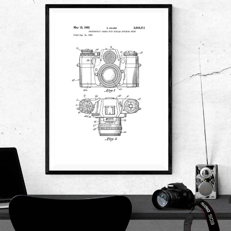 Винтажный патентный постер для камеры, Художественная печать на стену, старинная камера, холст, картина в стиле ретро, Настенная картина, украшение для фотографии