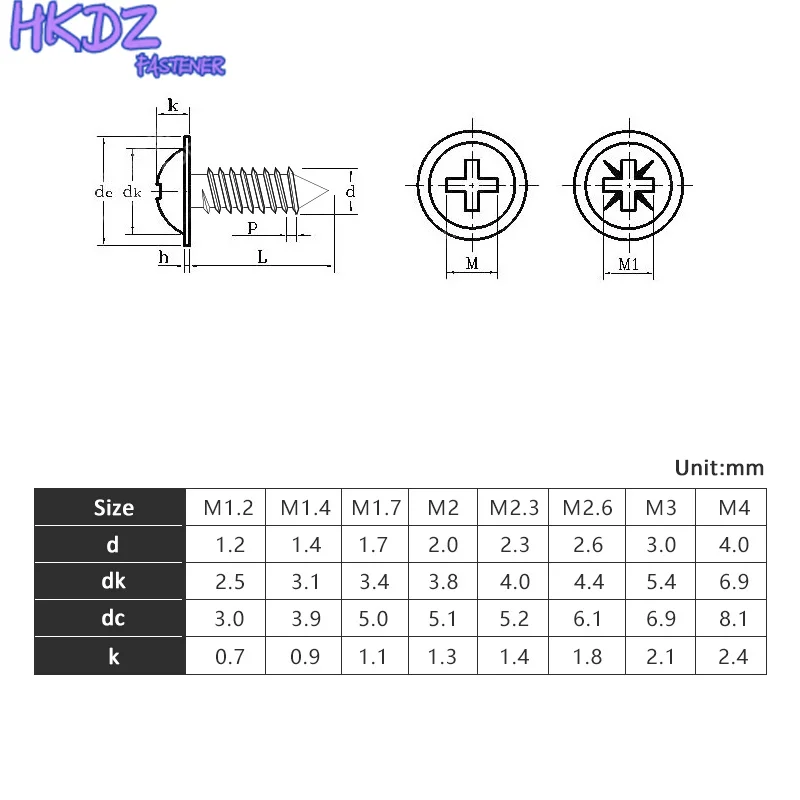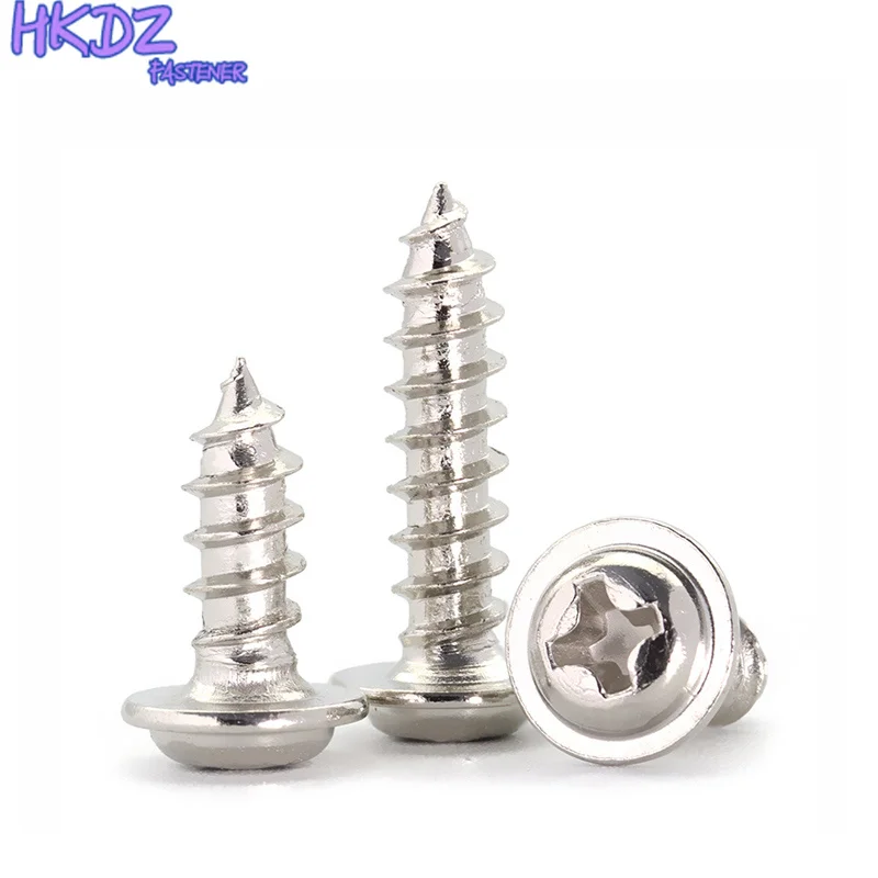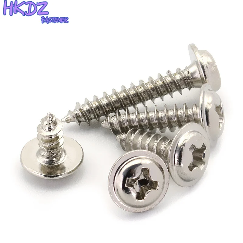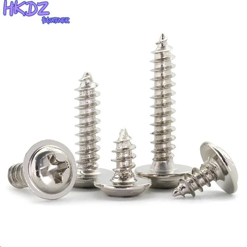 Самонарезающие винты PWA, никелированные, с круглой головкой, с площадкой 100, M1.2-M4 шт., шурупы с шайбой