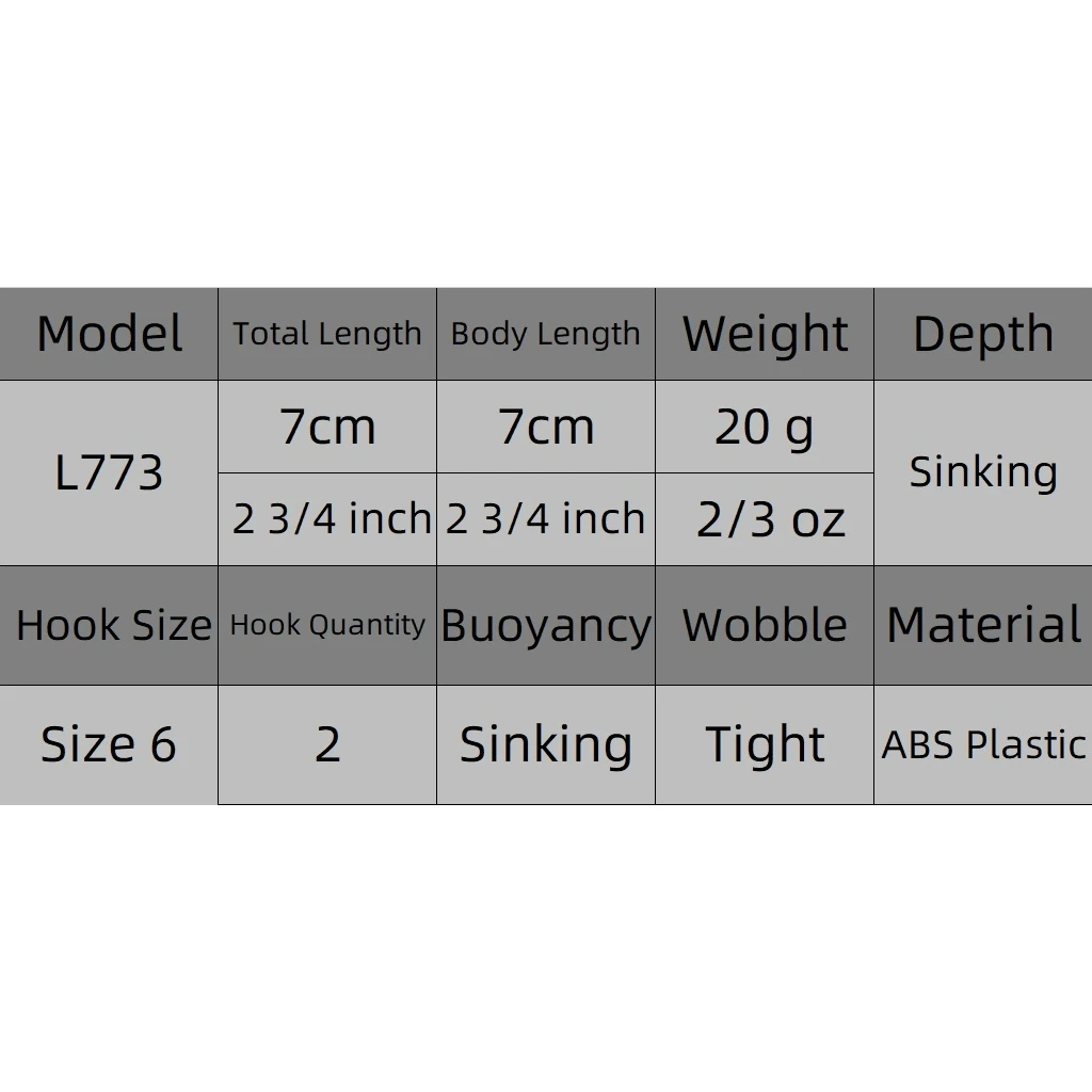 Приманка рыболовная wLure L773, 7 см, 20 г