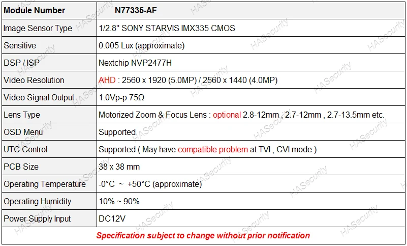 *ТребуетсяВидеорегистратор AHD 5.0MP или 4.0MP для работы с этим модулем камеры на высокой производительности.