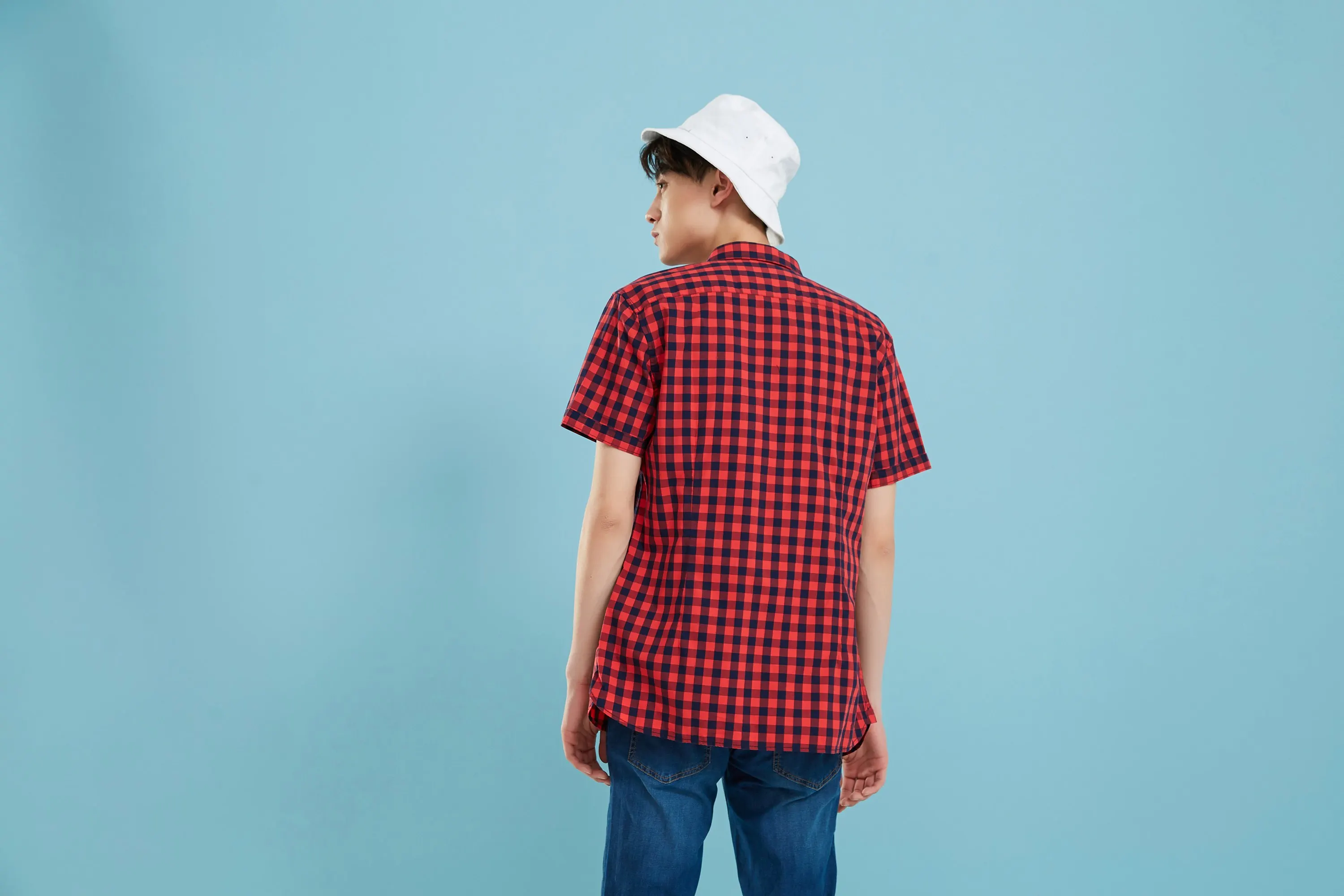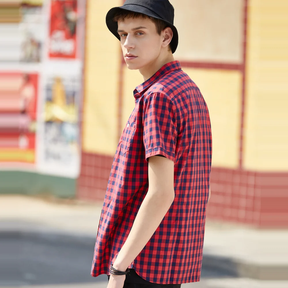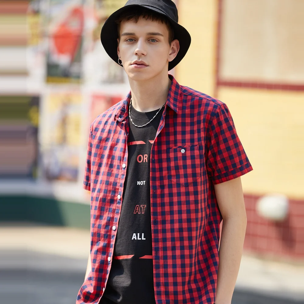 Рубашка METERSBONWE мужская летняя с коротким рукавом, блуза в клетку, повседневная одежда