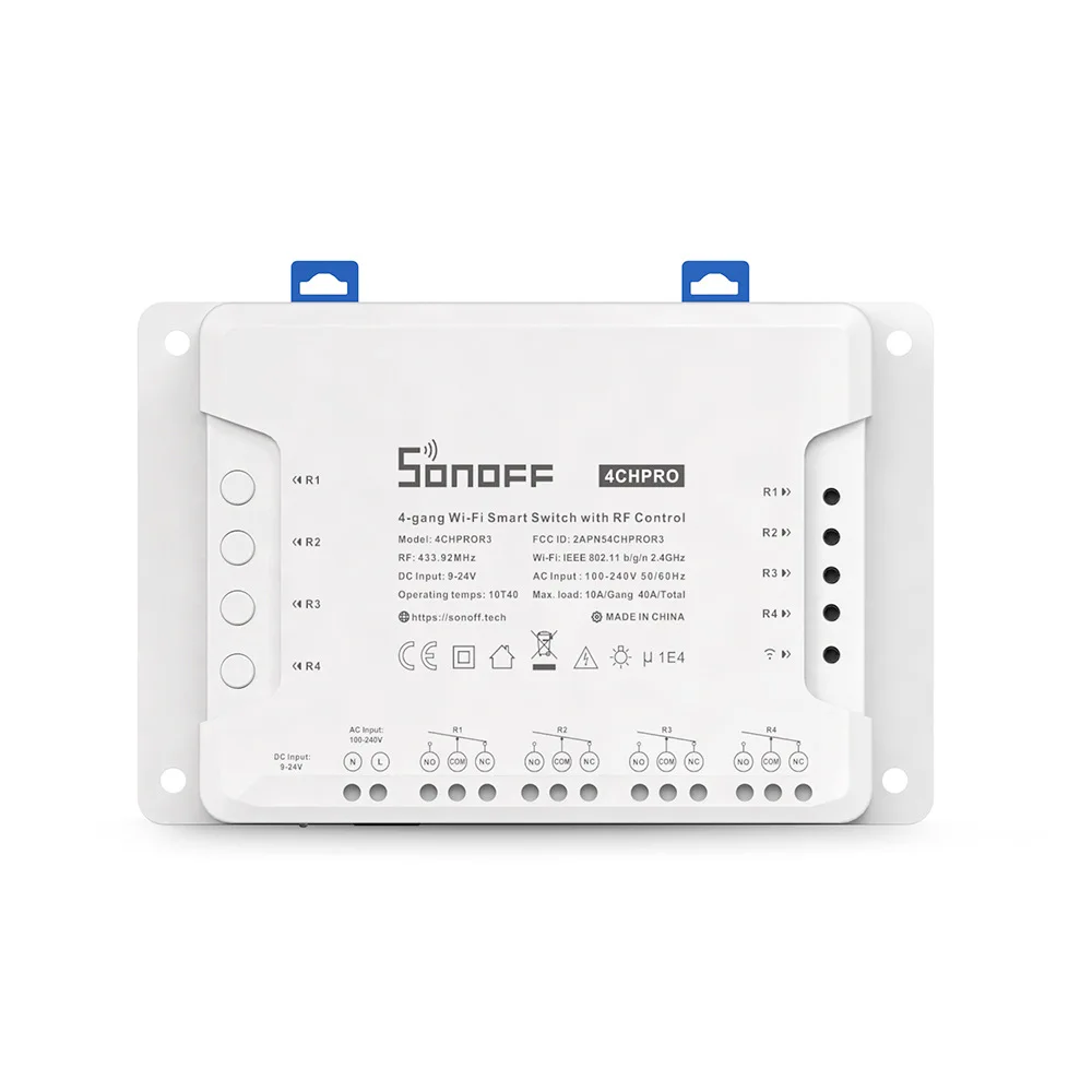 Sonoff 4CH и 4CHR34-gang переключатели с din-рейкой. Sonoff 4CH (R3) 4 переключателя на светильник поддерживает подключение и управление 4 электрическими приборами, которые можно включать/выключать отдельно кнопками или iOS/Android App EweLink. Кроме того, с помощью переключателя multi gang вы можете проверить состояние устройств в реальном времени для каждого устройства в приложении. Наличие Sonoff 4CH (R3) Multi банды выключатель означает, что вы имеете 4 Sonoff basic переключатели WiFi интеграции вместе.