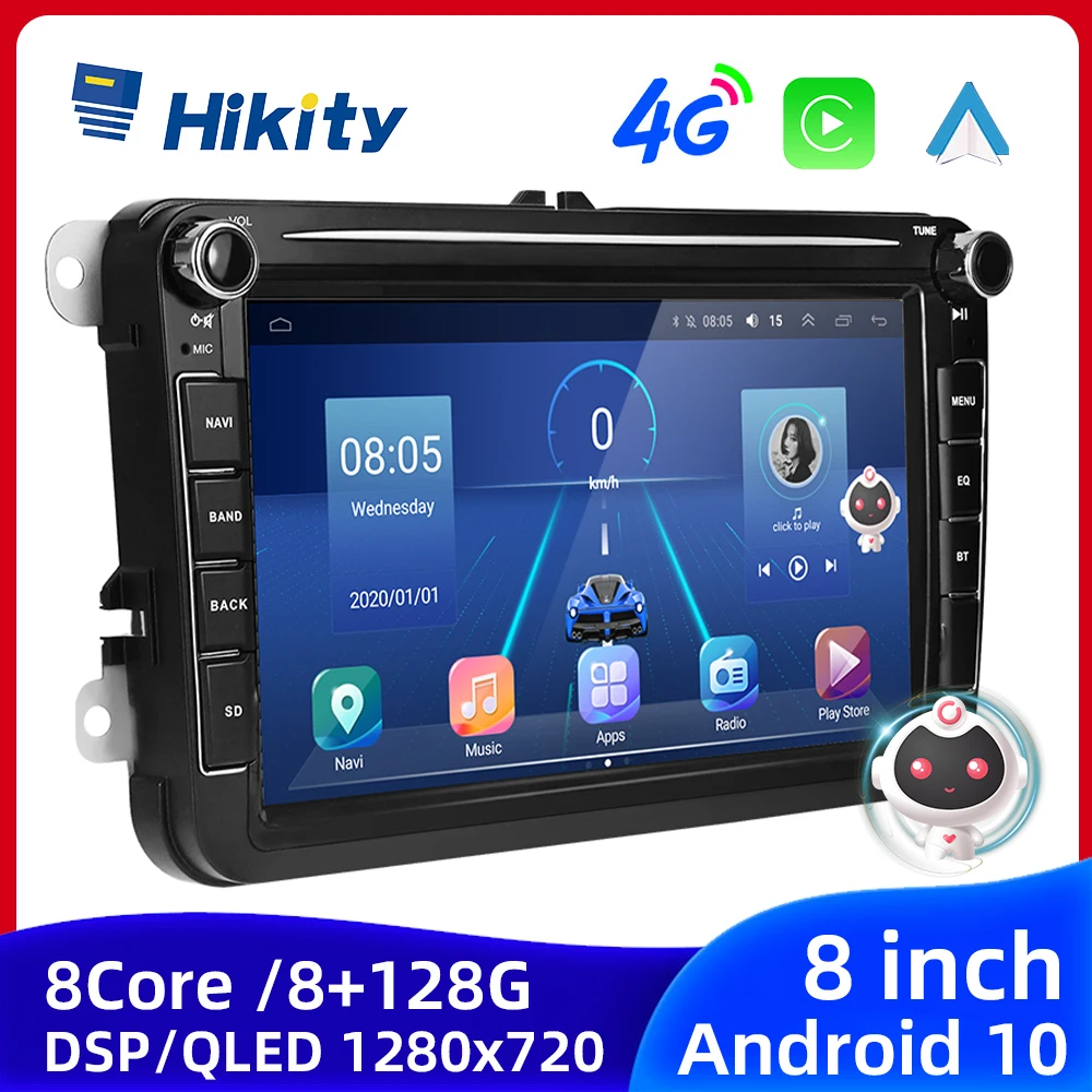 Hikity AI Voice 8 Core 8G 128G Android Авто Carplay 2 Din 4G авторадио для VW Volkswagen Golf Polo Tiguan Passat B6 Skoda Jetta