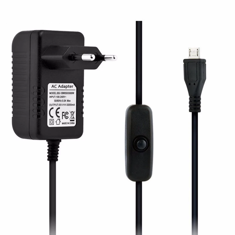 Aokin 5V 3A для Raspberry Pi 3 B + адаптер питания Micro USB адаптер переменного тока с переключателем включениявыключения питания вилка ЕС США Великобритании Австралии