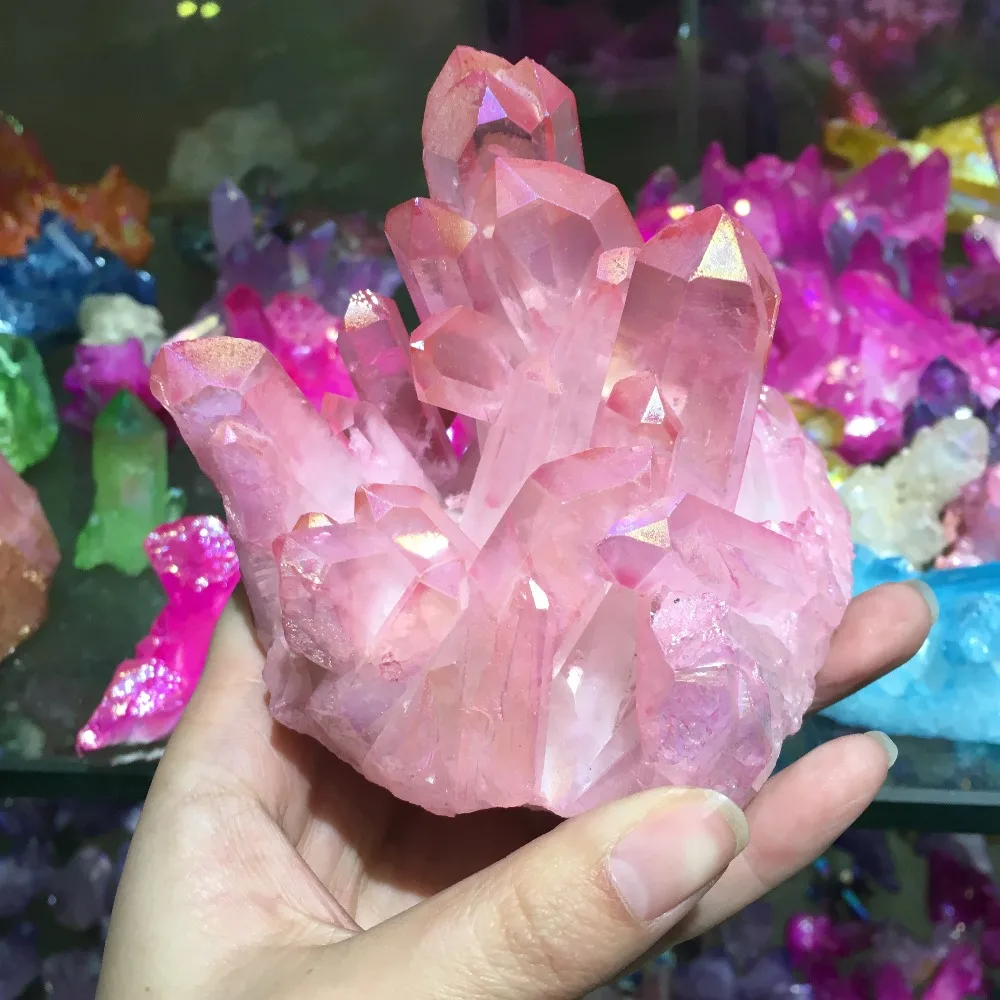 260-320 г редкий красивый образец кластера кварцевого кристалла с розовым пламенем и аурой