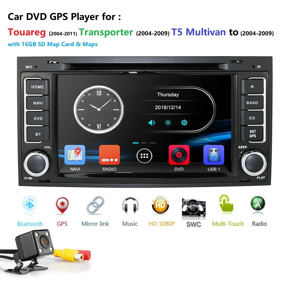 2 din 7-дюймовый автомобильный DVD-плеер для VW Touareg Multivan T5 (2004-2009) GPS Bluetooth Радио RDS USB рулевое колесо Canbus бесплатно карта 8G
