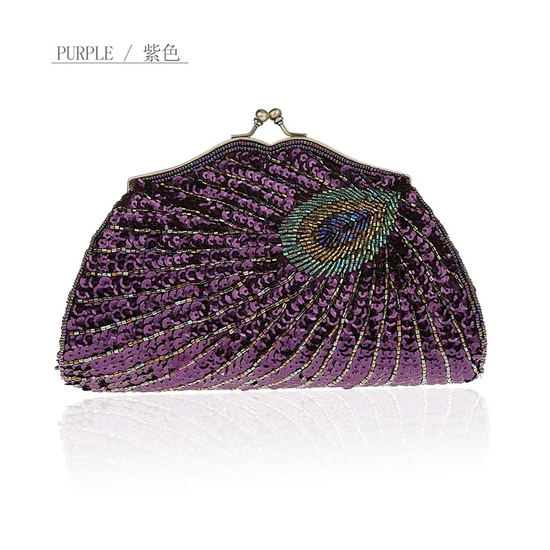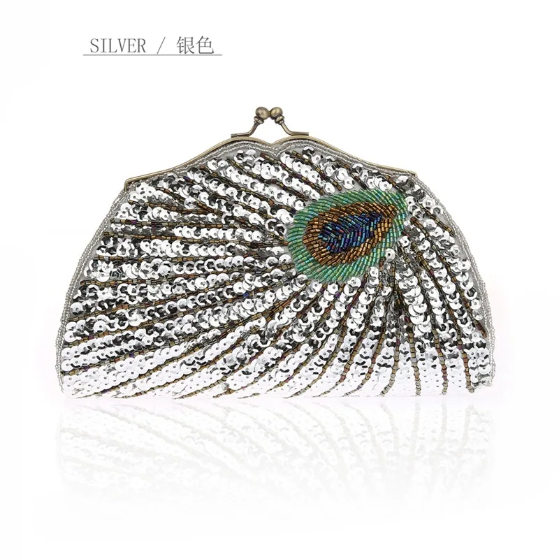 Винтажные женские вечерние клатчи с ручкой, с рисунком павлина, с блестками, Свадебный клатч, кошелек, Роскошная мини-сумка WY146