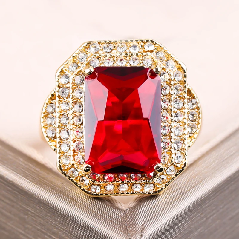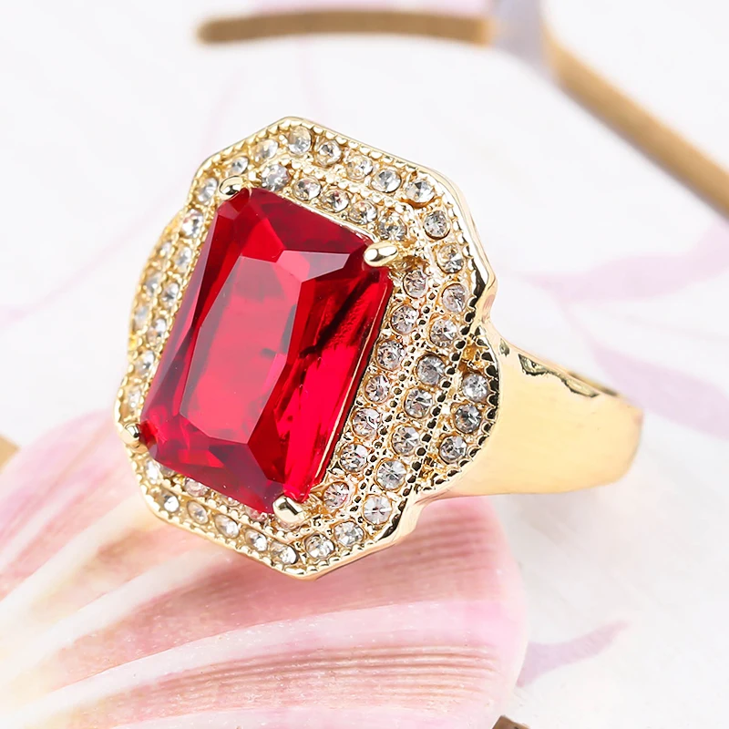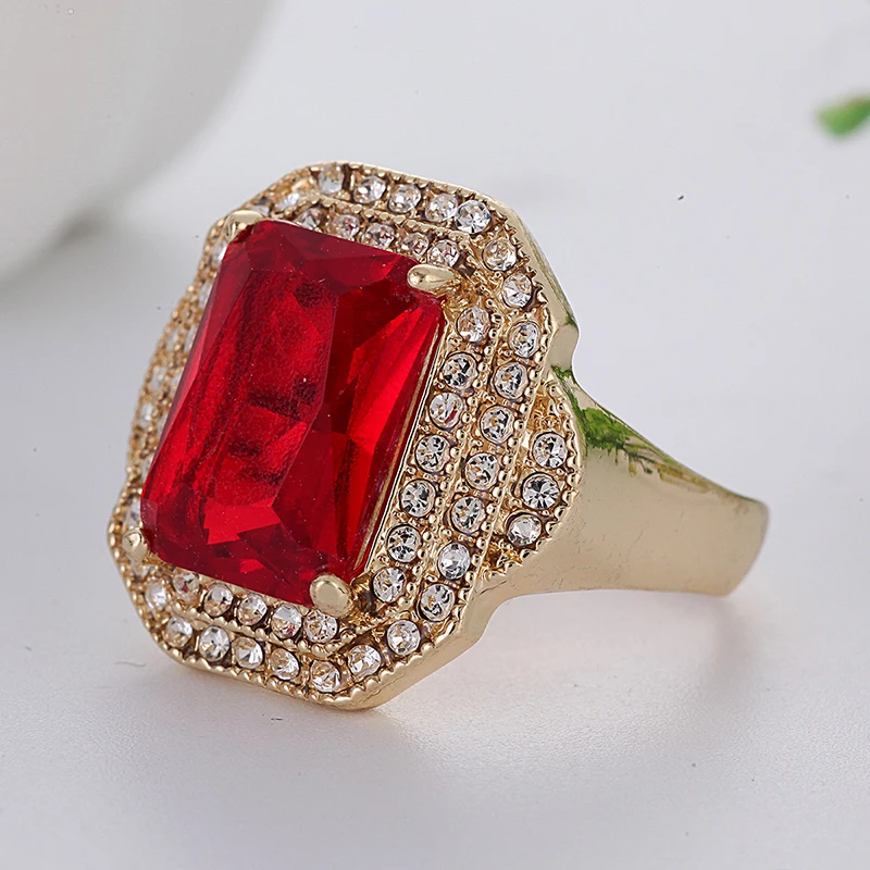 Роскошное Золотое кольцо стразы на палец для мужчин, сверкающие мужские кольца в стиле хип-хоп с красным квадратным цирконием L3C173
