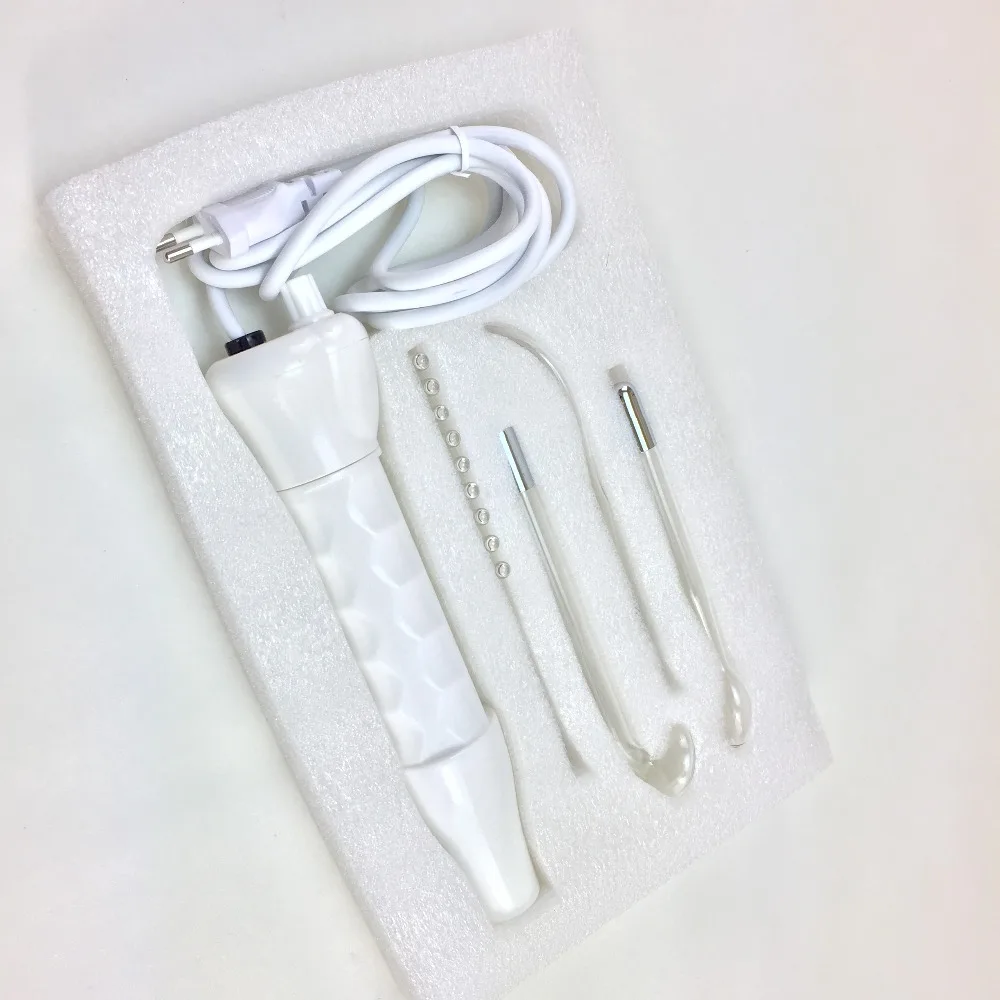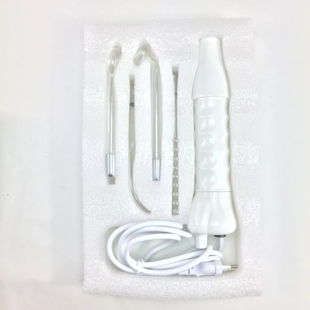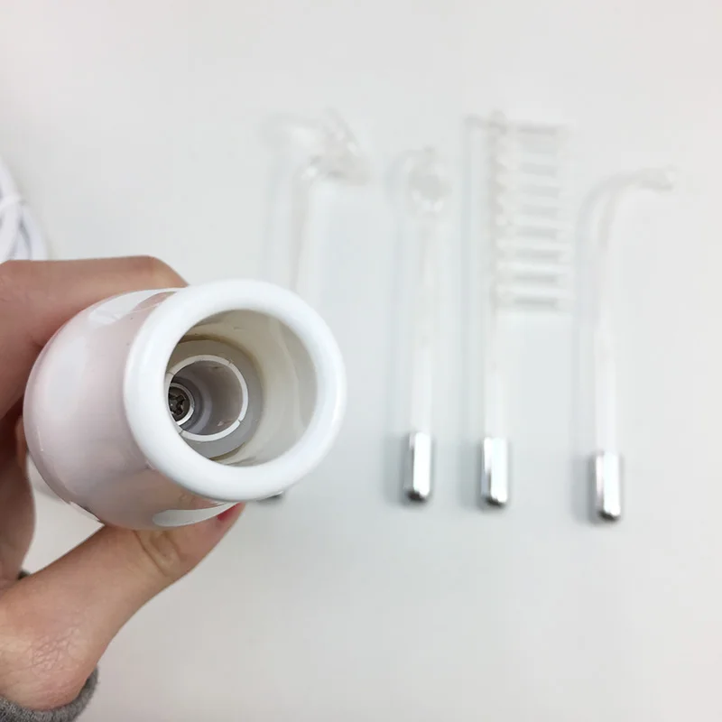 1. Сначала Смажьте эссенцию и крем на лицо, а затем удерживайте металлическую планку, чтобы положить стеклянную трубку на лицо. Включите машину.