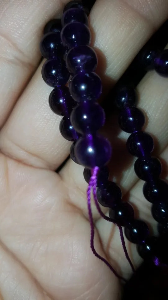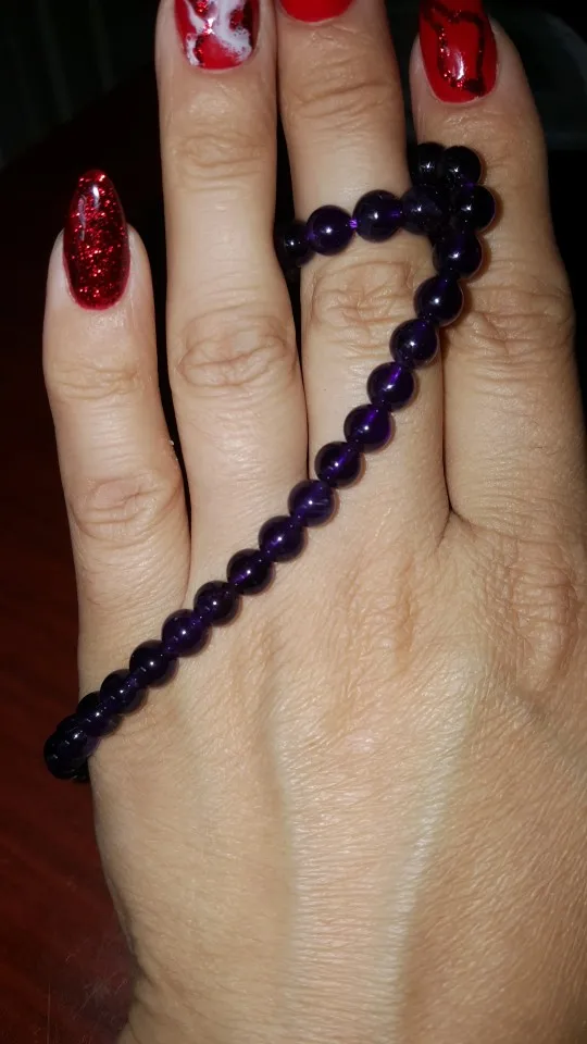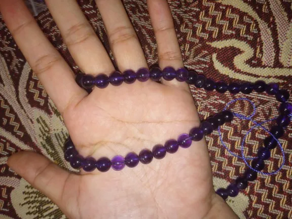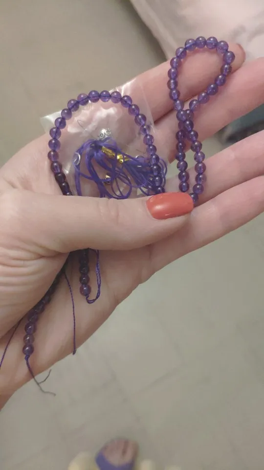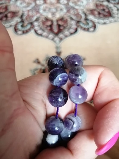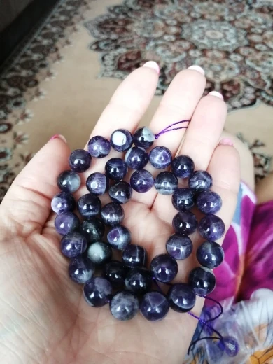 Аметист как на фотках, очень красивый. Очень красивый. Бусину пока не расскалывала не смотрела настоящий или нет, но у продавца покупаю далеко не первый раз и он никогда еще не присылал подделку, всегда пишет если это имитация. Главное внимательно изучать описание перед покупкой.