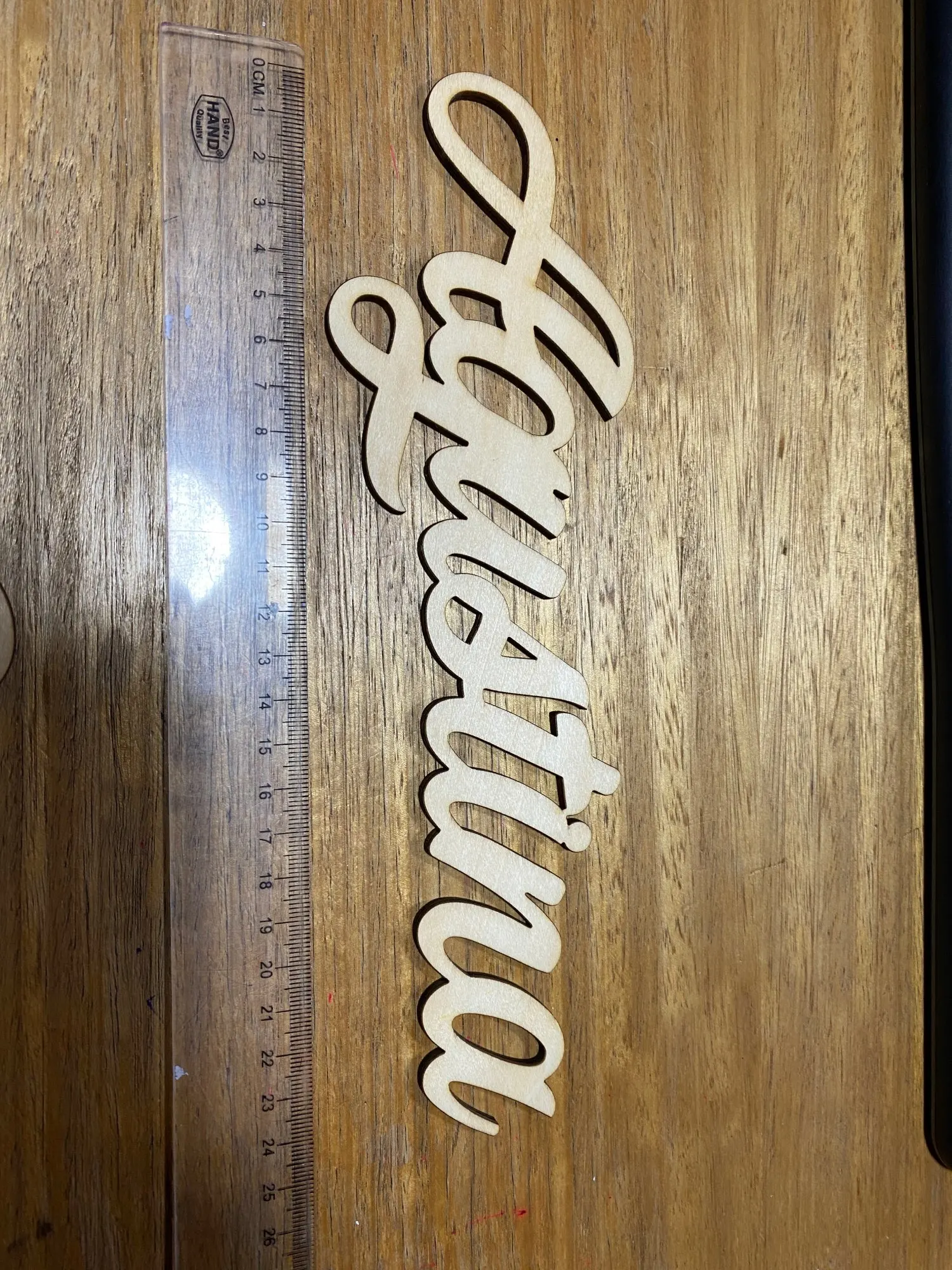 Идеально! Идеально! Общение с продавцом было очень хорошим, прежде чем отправить заказ, отправьте вам эскиз с именем, чтобы убедиться, что он вам нравится. Он прибыл менее чем через месяц, и хотя это хорошая вещь, он отлично смотрится на двери спальни.