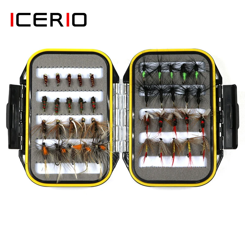 ICERIO 40 шт. влажные сухие мухи Нимфа муравей крючок форель рыболовная приманка нахлыстовая приманка Водонепроницаемый Бокс снасти