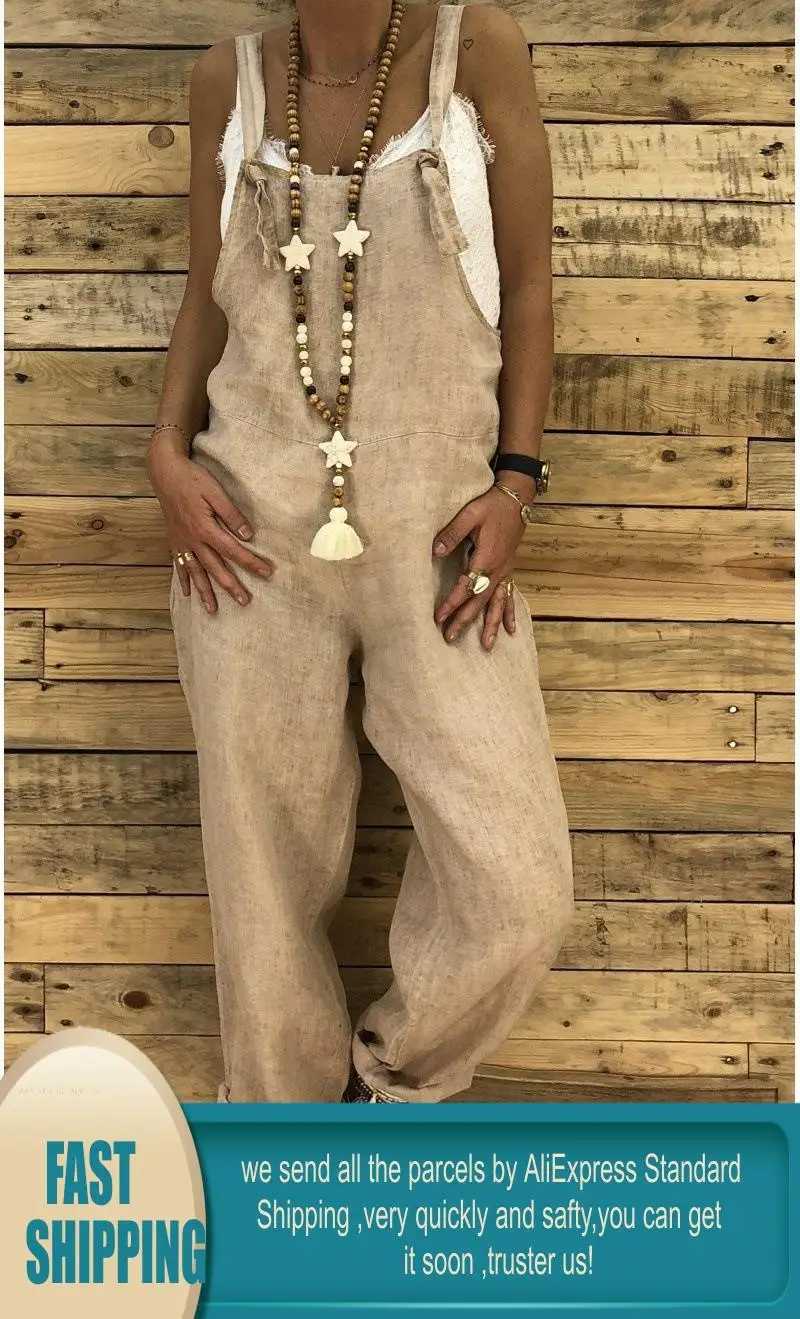 Комбинезон Женский Повседневный из хлопка и льна, Свободные мешкова...